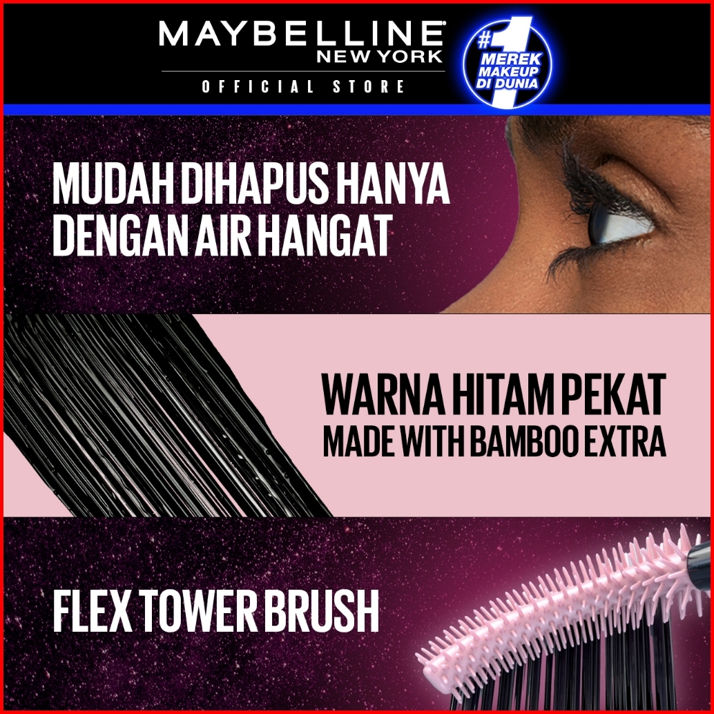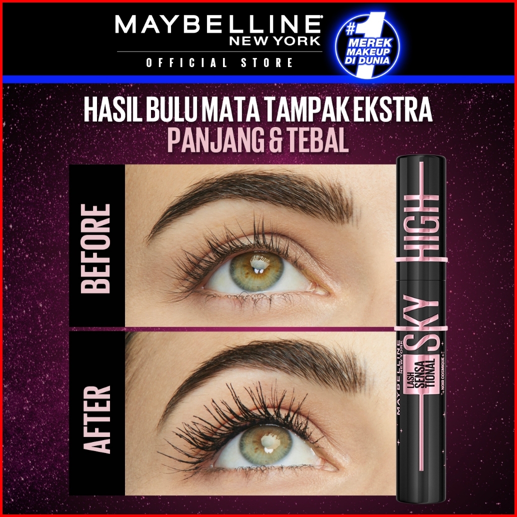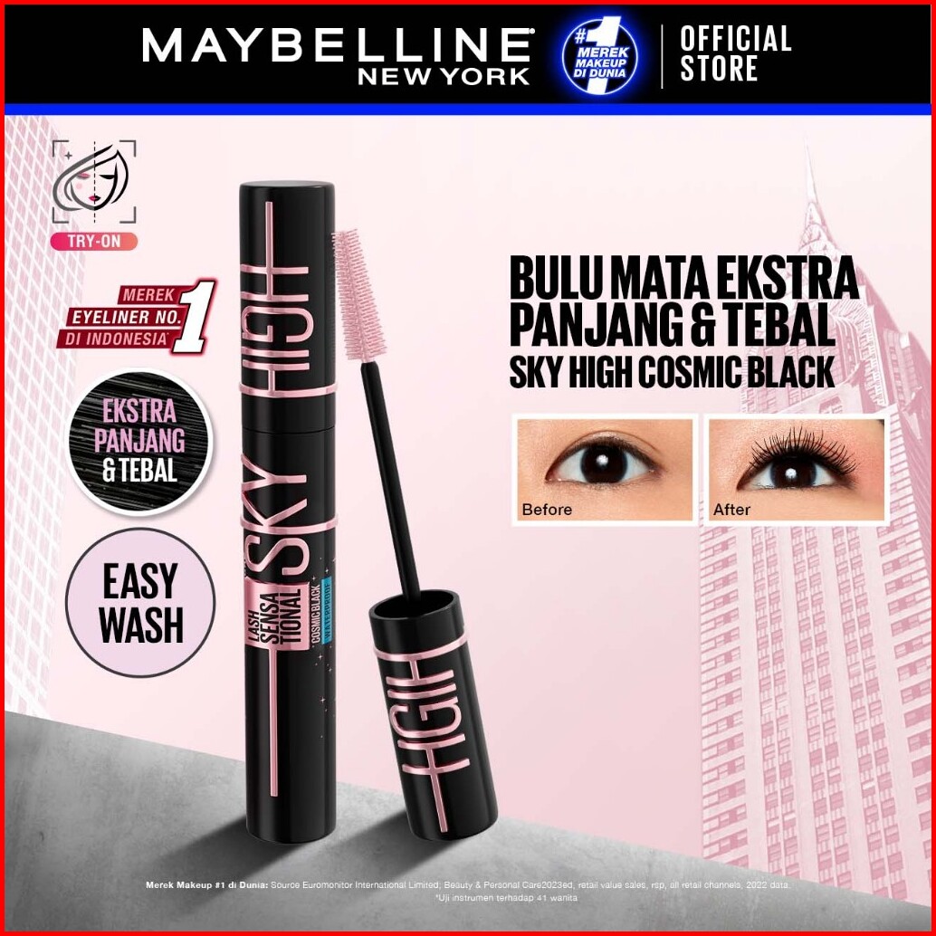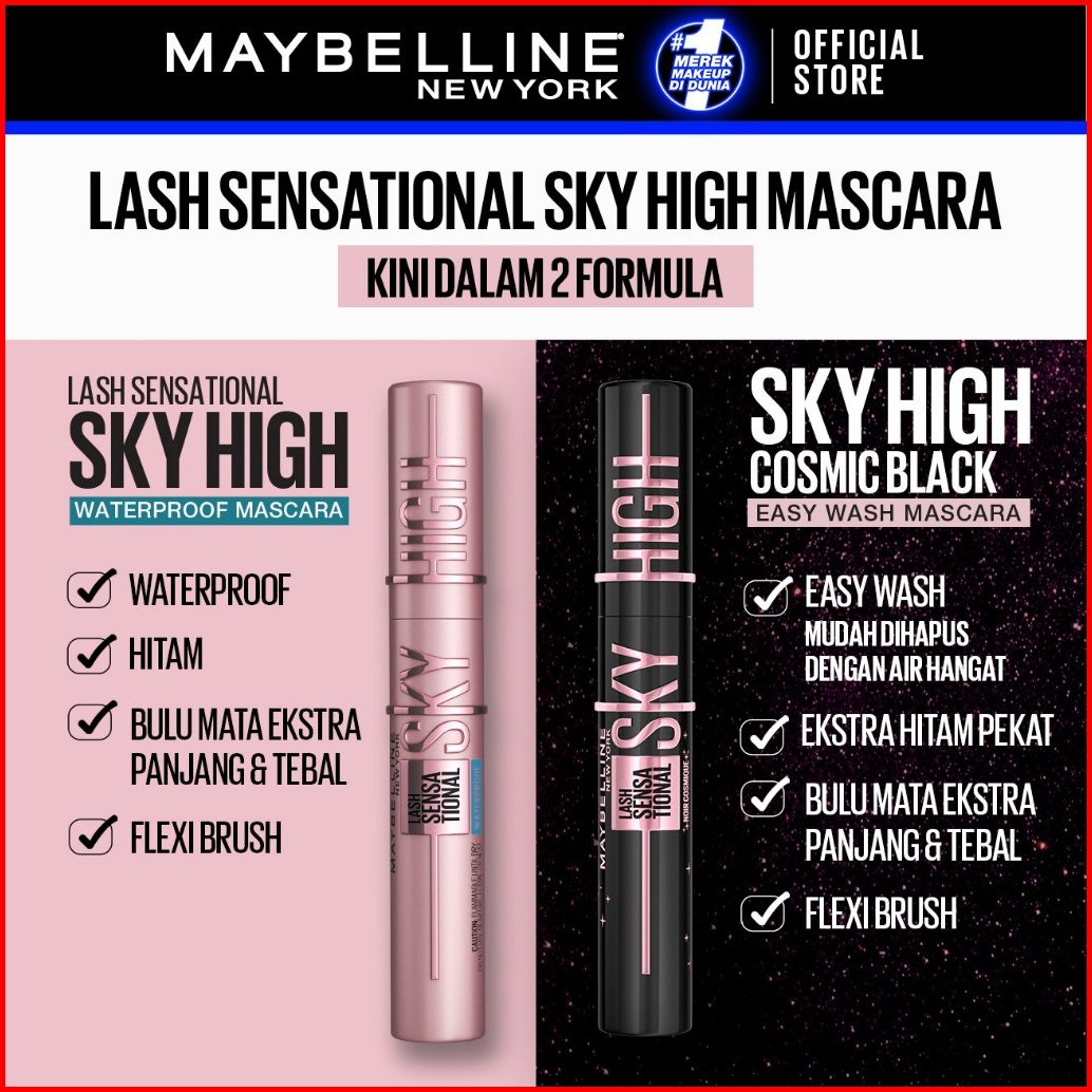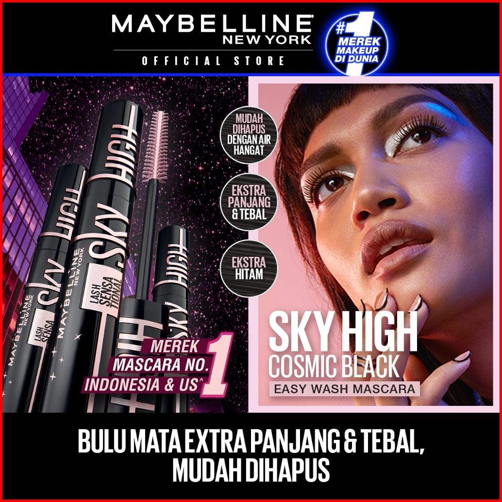 Maybelline Sky High Cosmic Black Easy Wash Mascara 6ml - Maskara Eye Make Up Black Bulu Mata Panjang Tebal Tahan 24 Jam