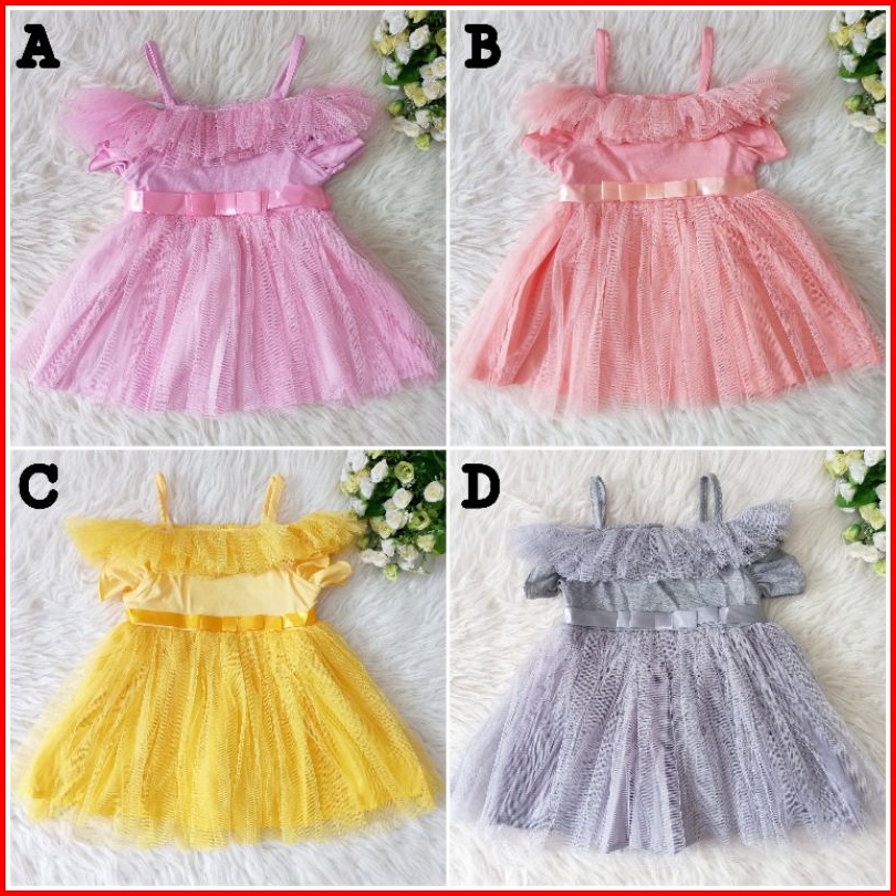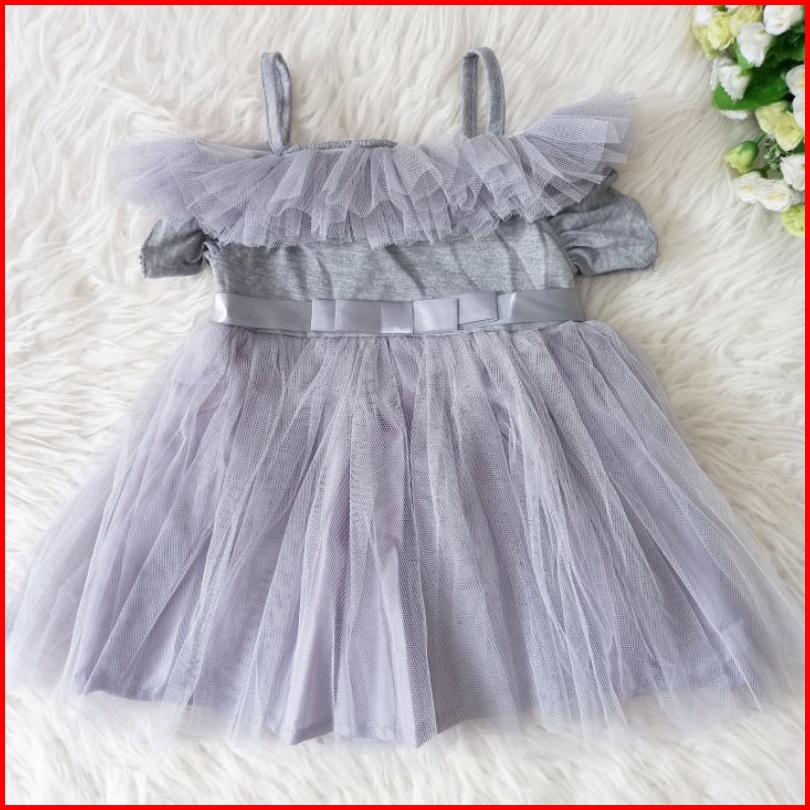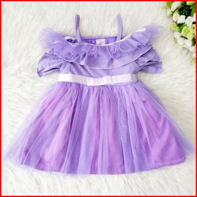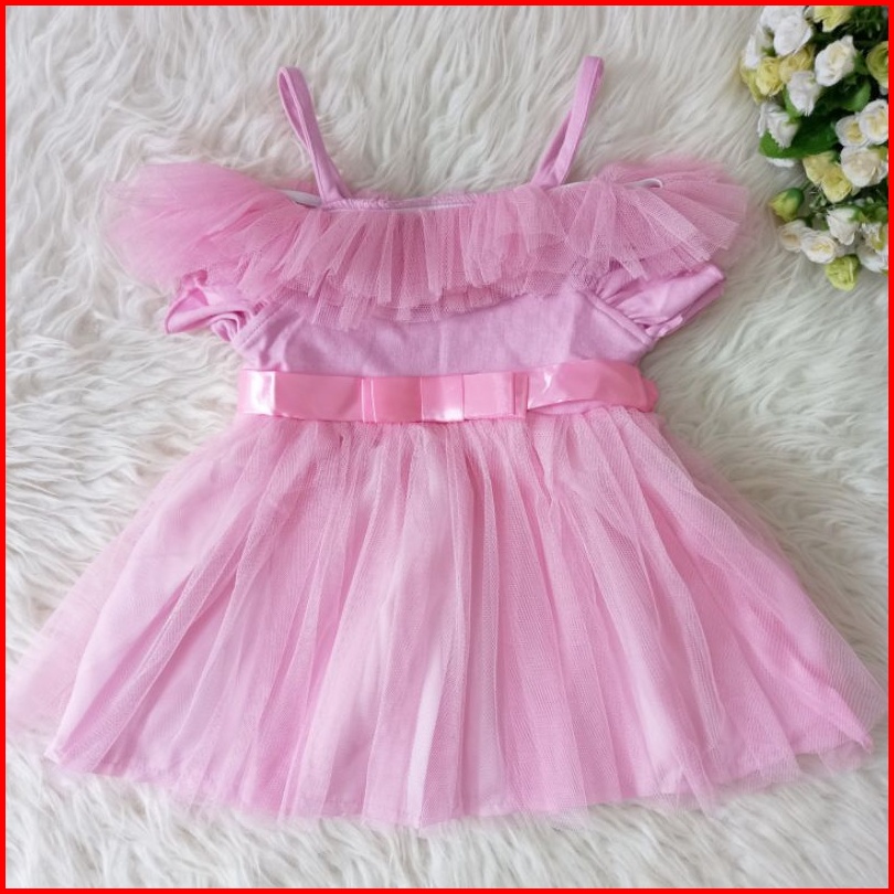 Dress Bayi Perempuan Ruffle 6-18 6-12 Bulan Bln Baju Pesta Ulang Tahun Ultah 1 Th Thn Fashion Anak Cewek Cewe Sabrina Tu