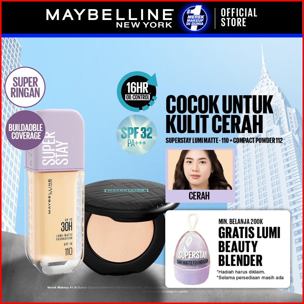 Maybelline Paket Makeup Face Kulit Cerah - Superstay Lumi Foundation 110 Fit Me Compact Powder 112