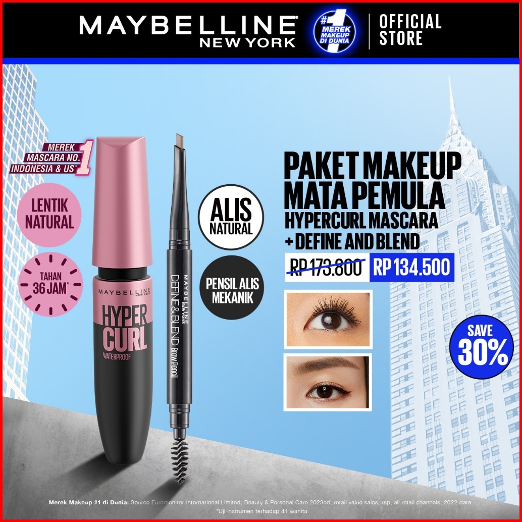 Maybelline Paket Makeup Mata Hypercurl Waterproof Mascara Define And Blend Eyebrow Pencil Eye Make Up Bulu Mata Panjang