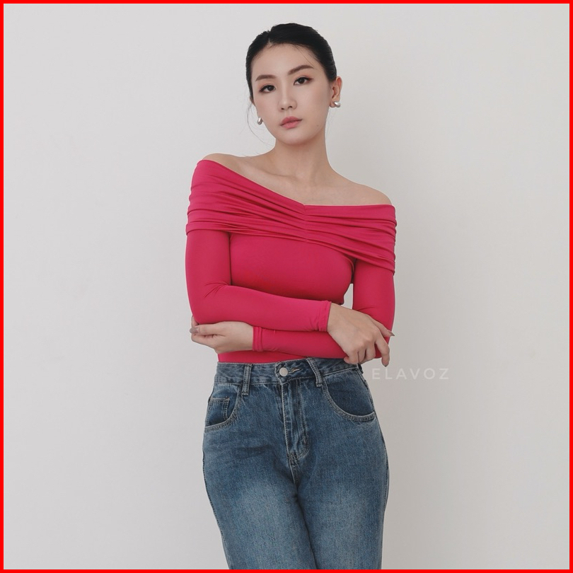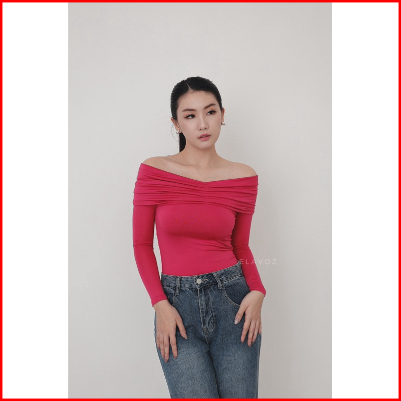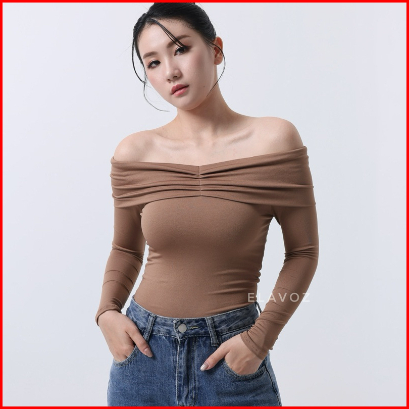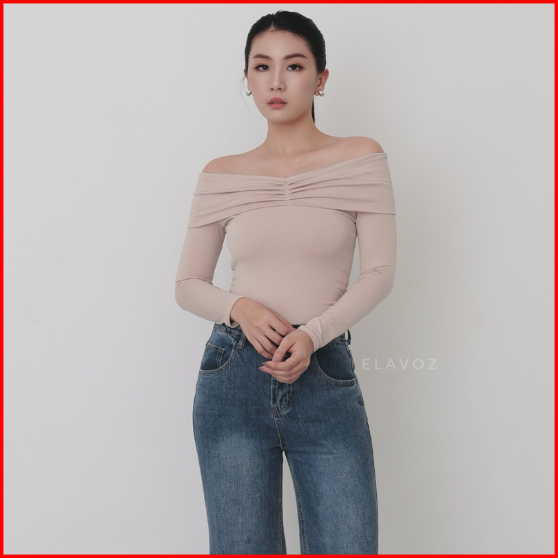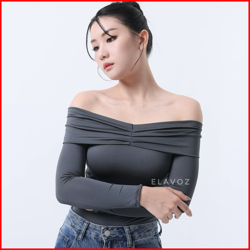 Elavoz Airi Top Sabrina Longsleeve Atasan Wanita Kaos Wanita