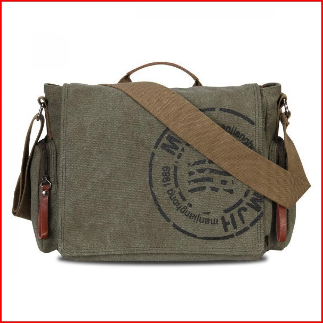 Manjianghong Tas Selempang Pria Messenger Canvas Printing - 1124 Army Green