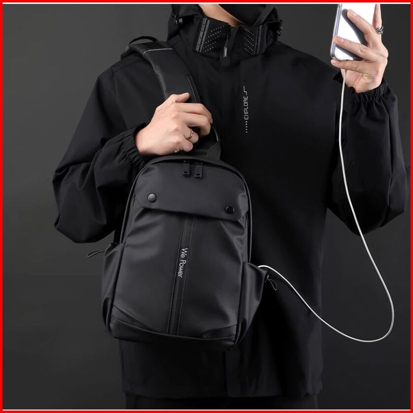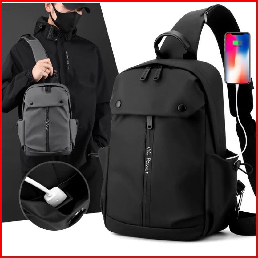 We Power Tas Pria Sling Bag Import Waterproof Usb Portable Tas Selempang Dada Anti Air