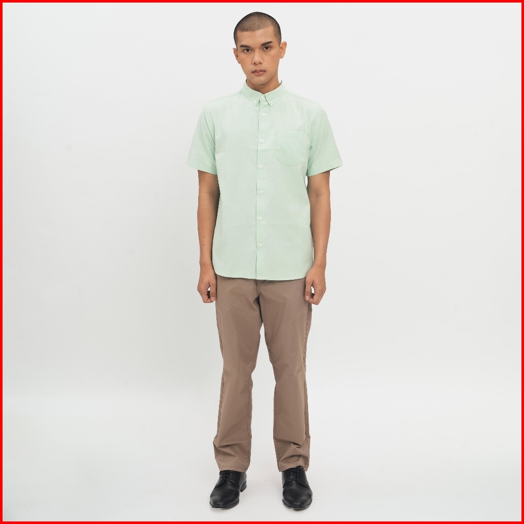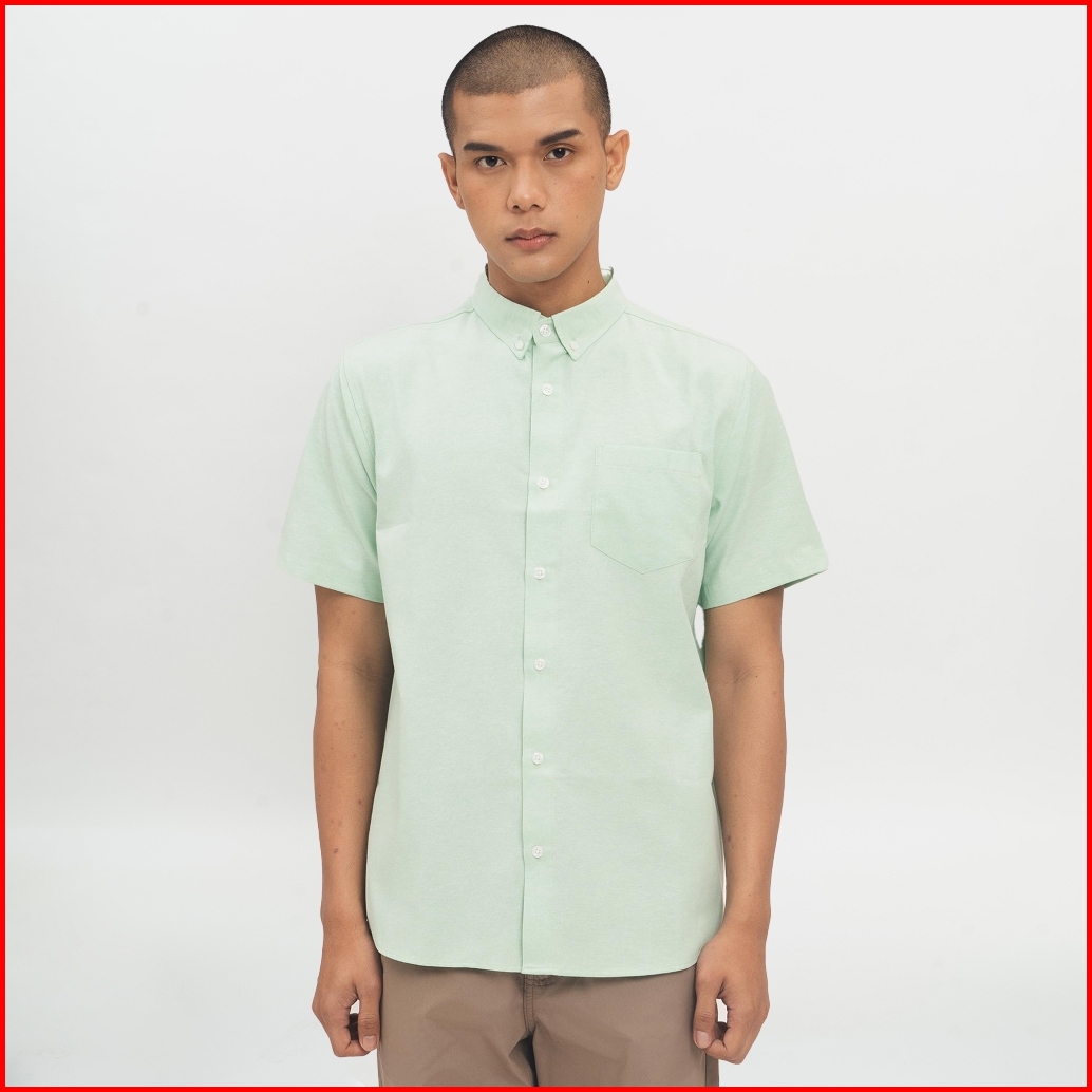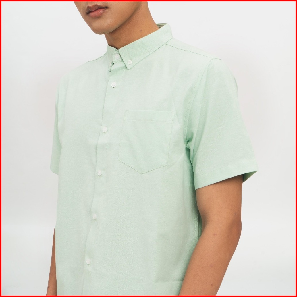 M231 Kemeja Pria Basic Polos Oxford Pendek Hijau 1457s