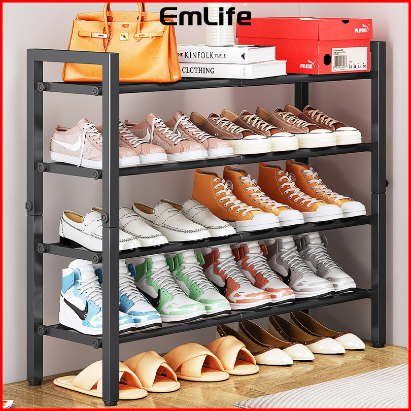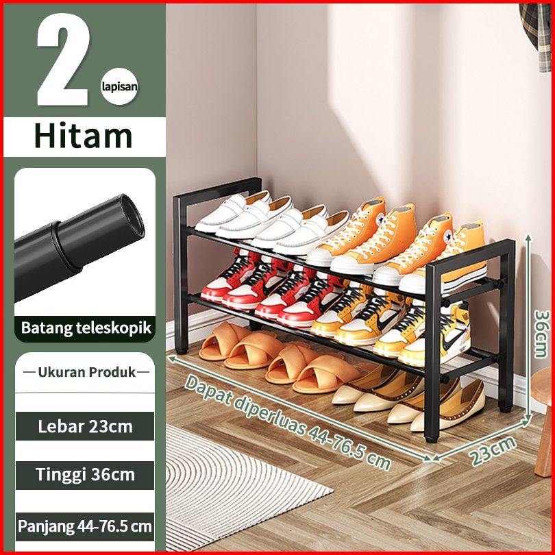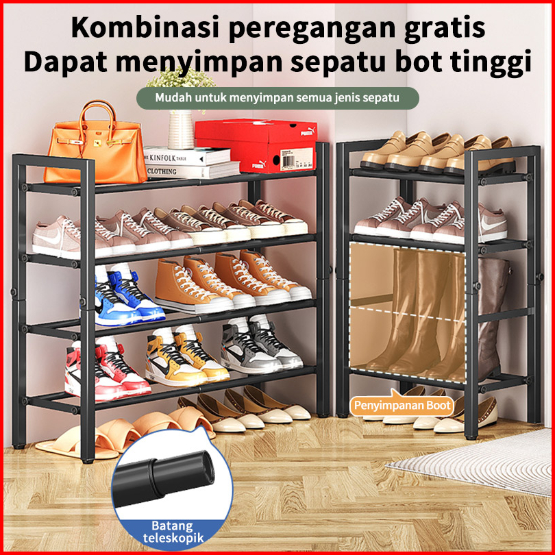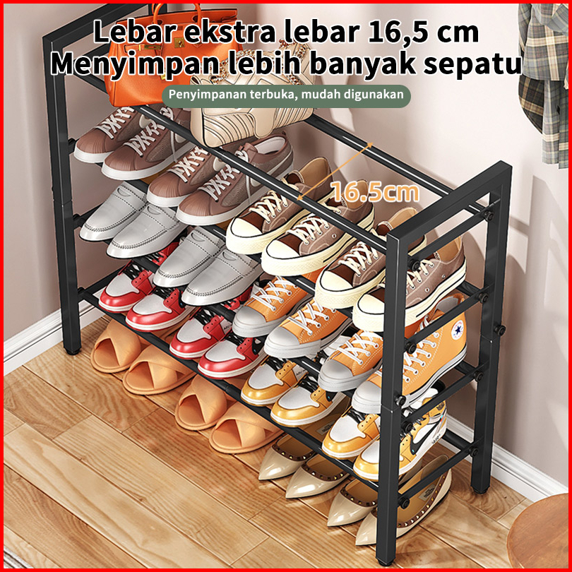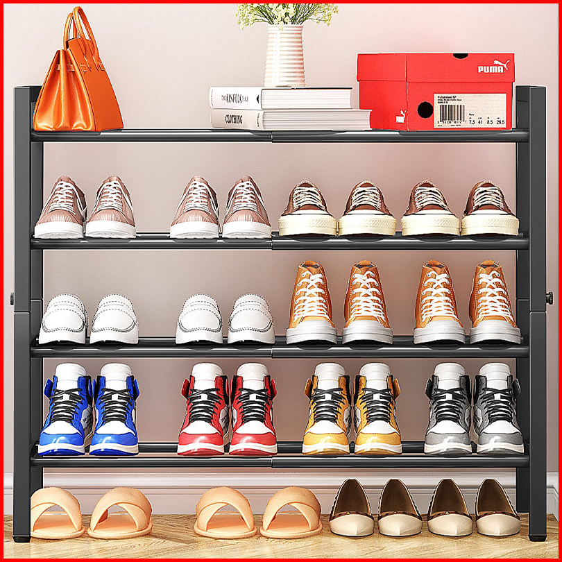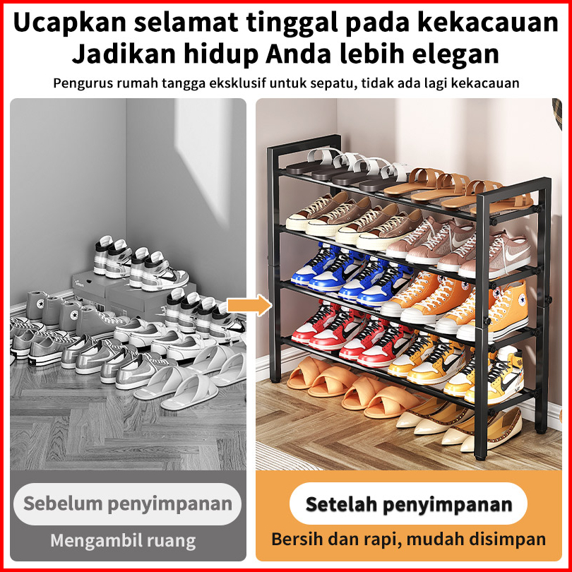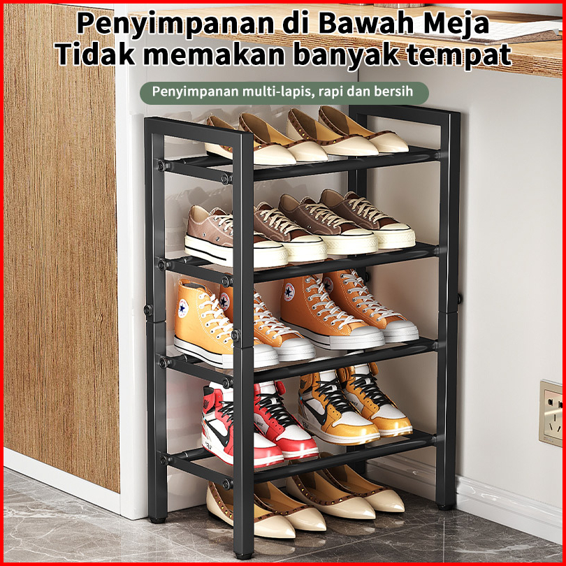 Rak Sepatu Yang Dapat Disesuaikan Rak Sepatu Yang Kokoh Tempat Sepatu Sandal Besi Hitam Rak Sepatu Serbaguna.