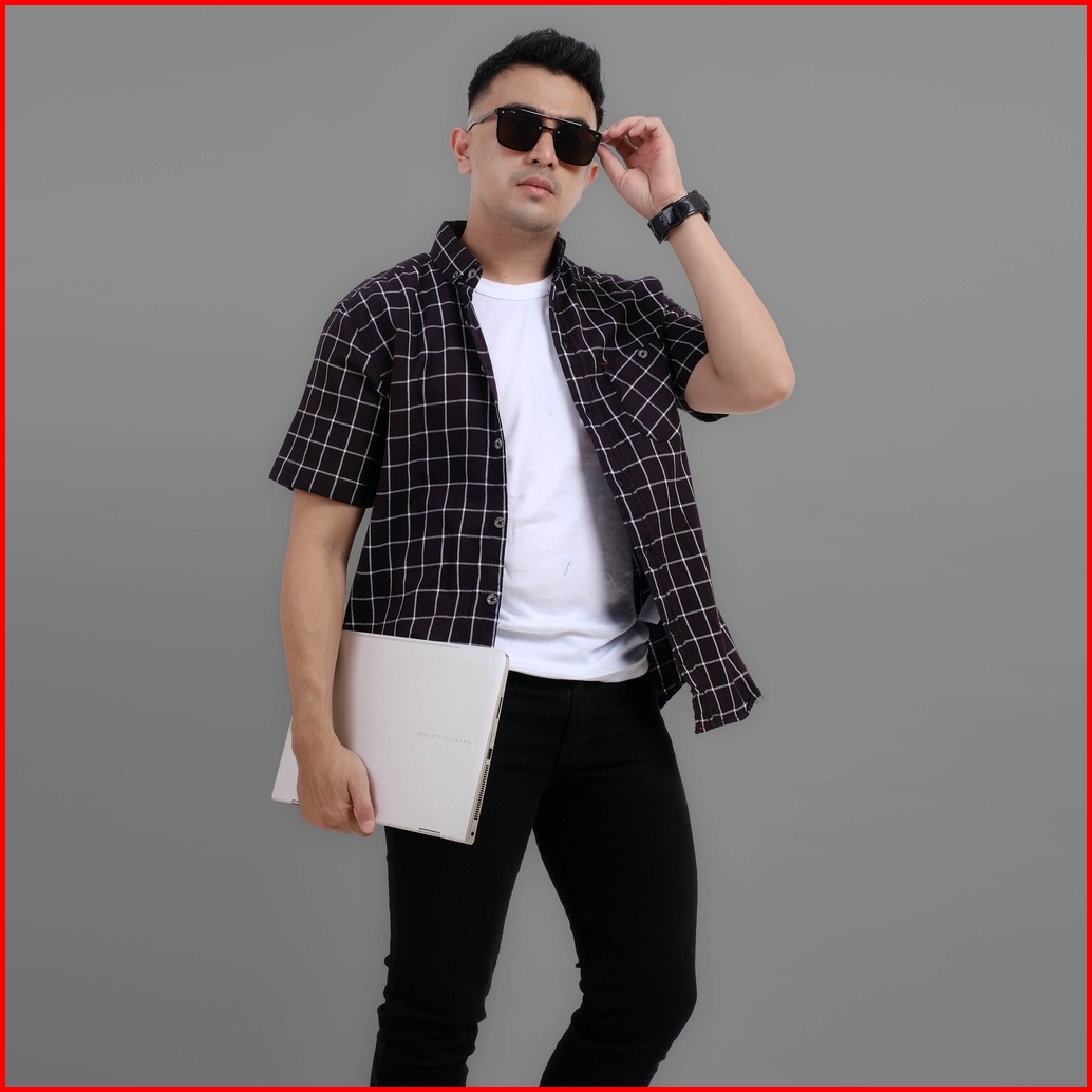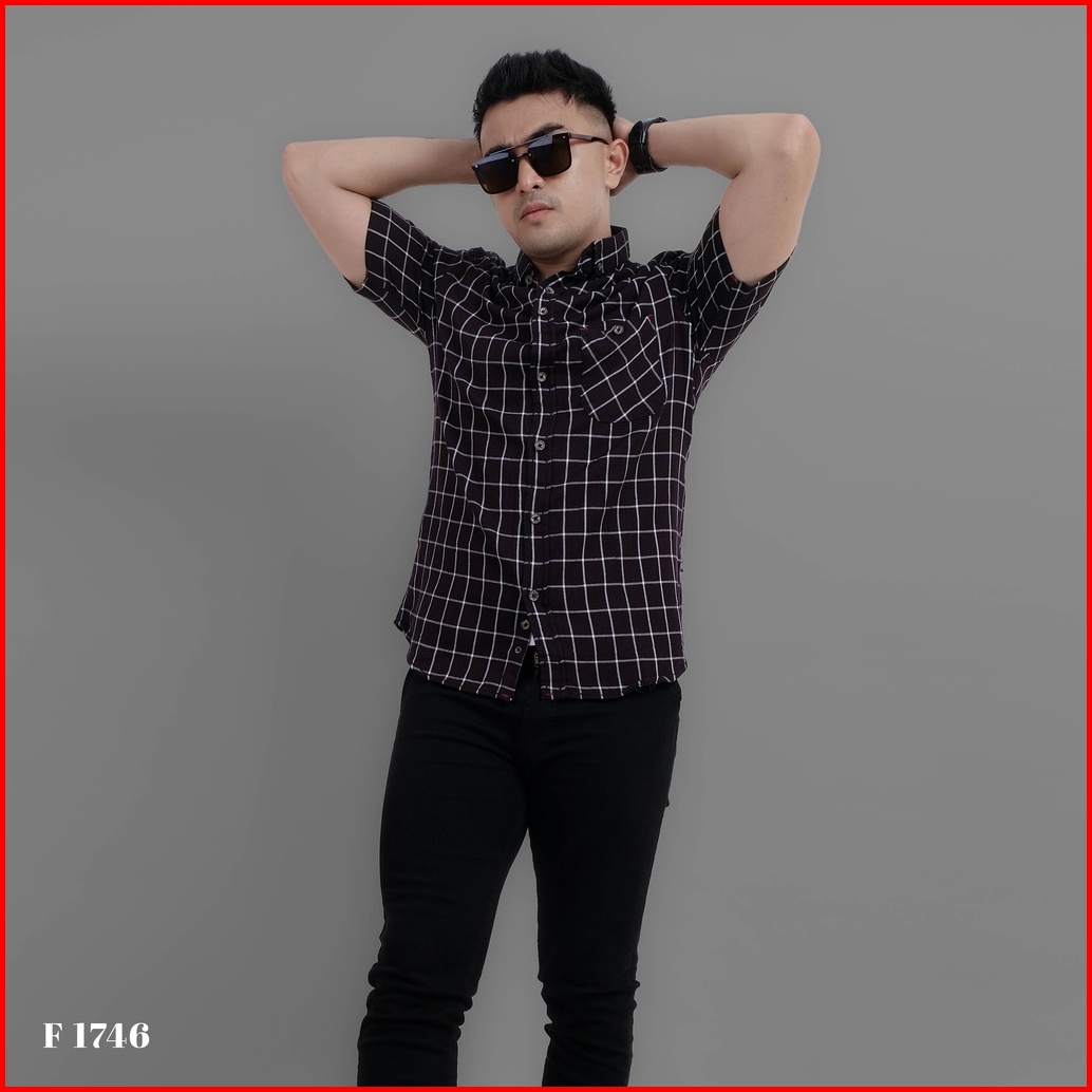 Dgm Kemeja Flanel Pria Lengan Pendek Casual 1746