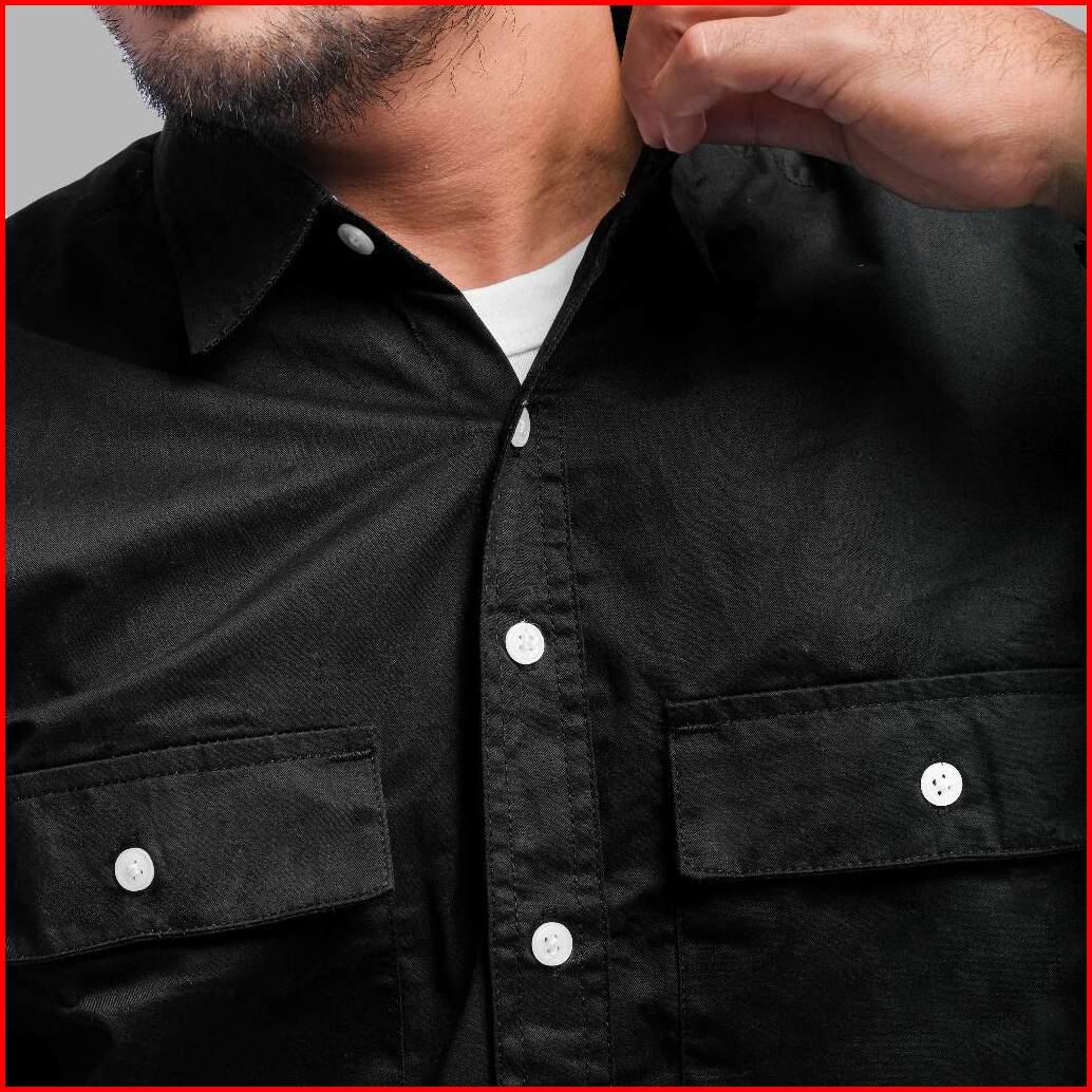 Dgm Kemeja Polos Hitam Double Pocket Pendek Katun Twill 30s Premium Workshirt Kemeja Kerja 2690
