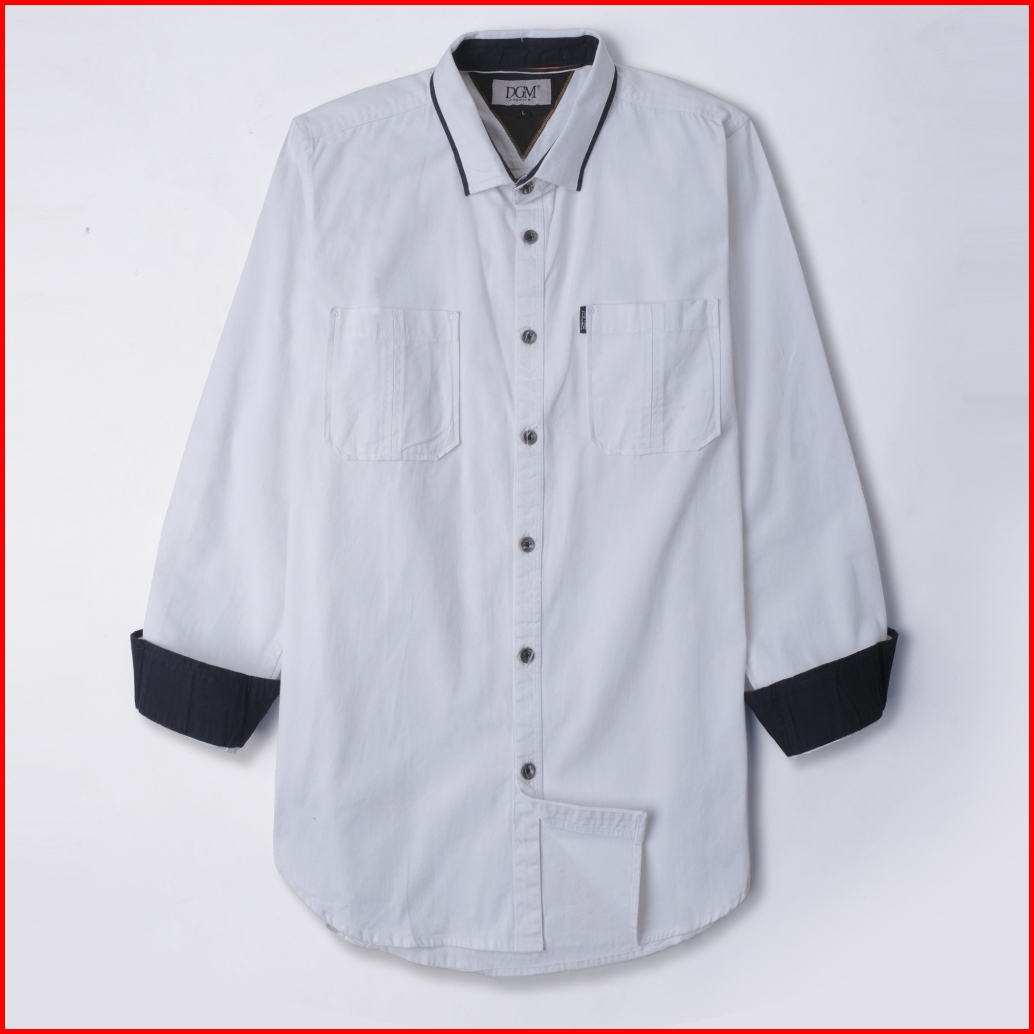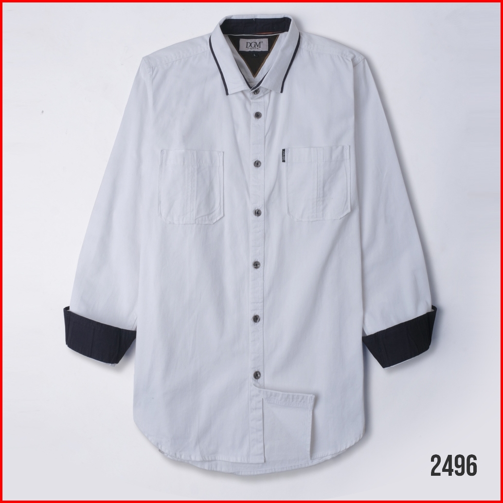 Dgm Workshirt Kemeja Kerja Katun Twill 30s Premium Lengan Panjang Double Pocket Kemeja Pria White Dylan 2496