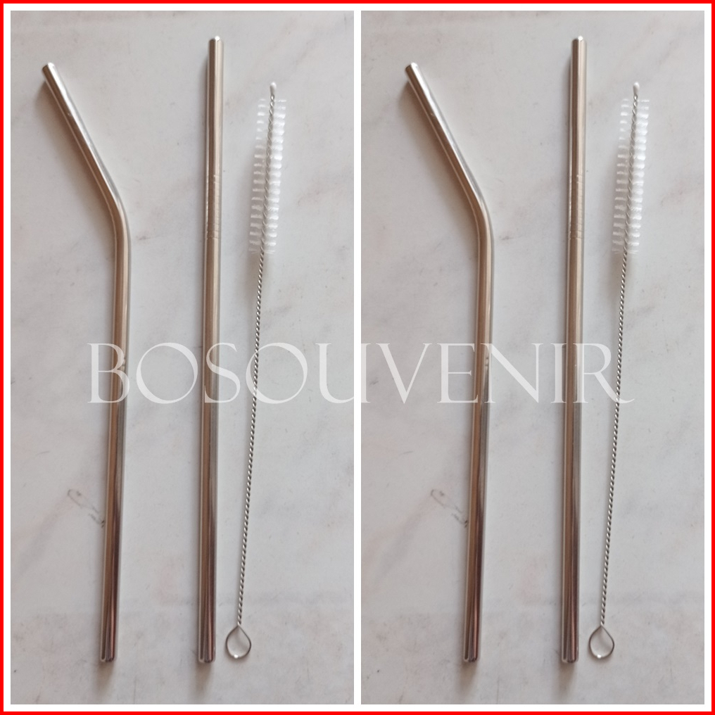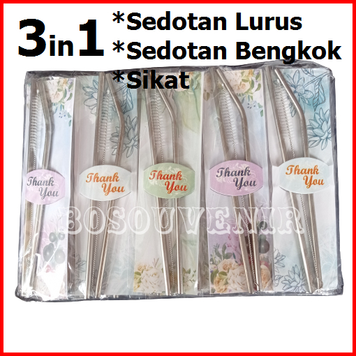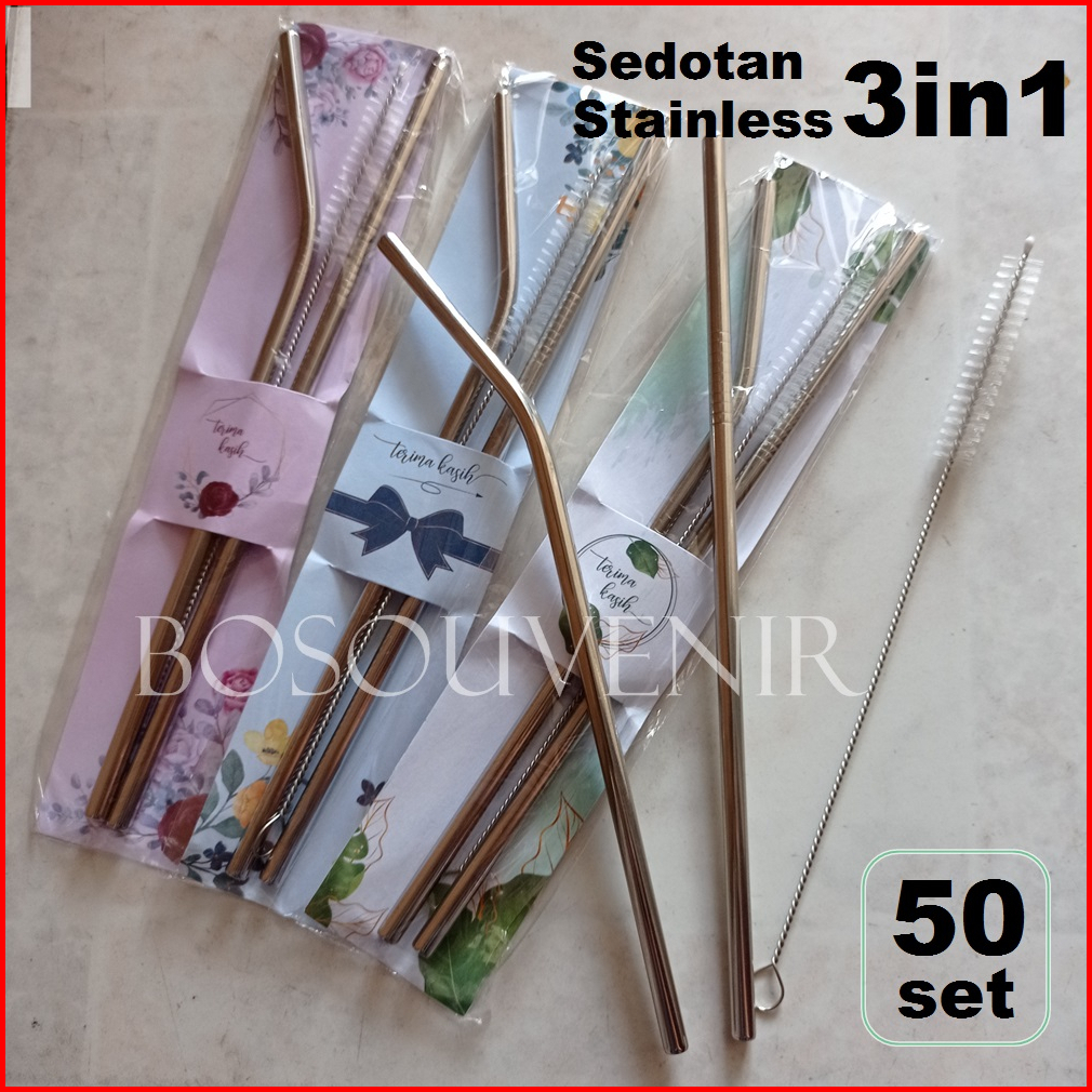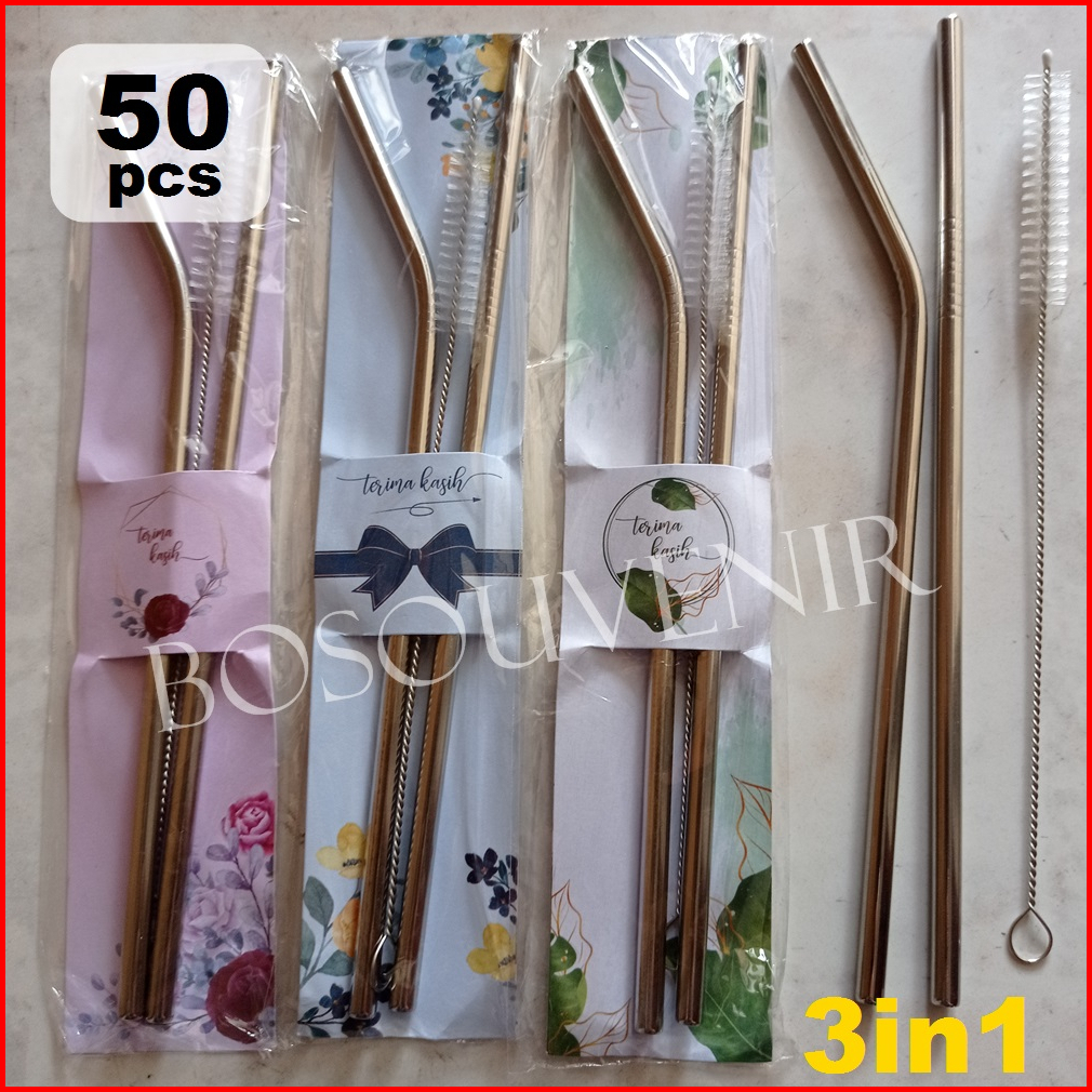 Isi 50 Set Souvenir Pernikahan Sedotan Stainless 3in1 Alas Saby