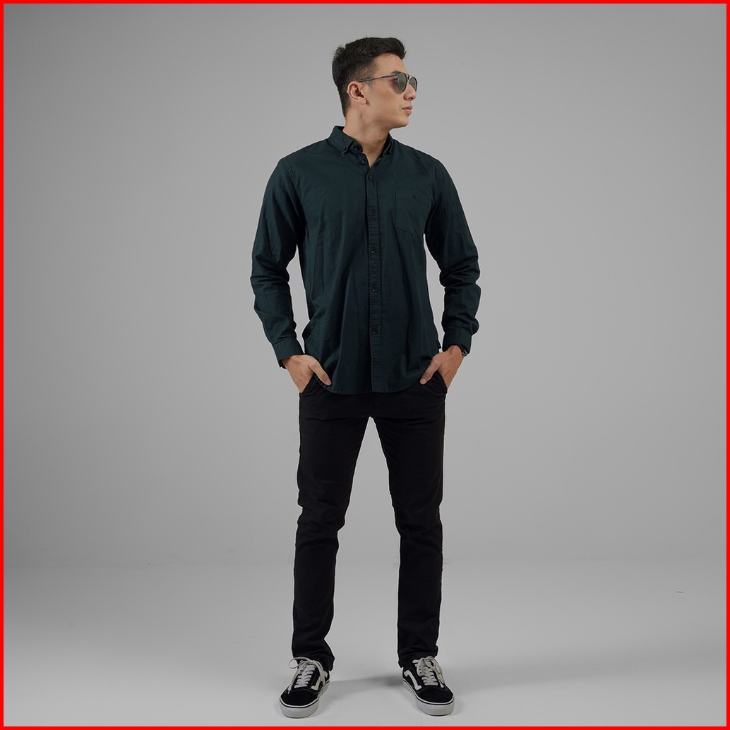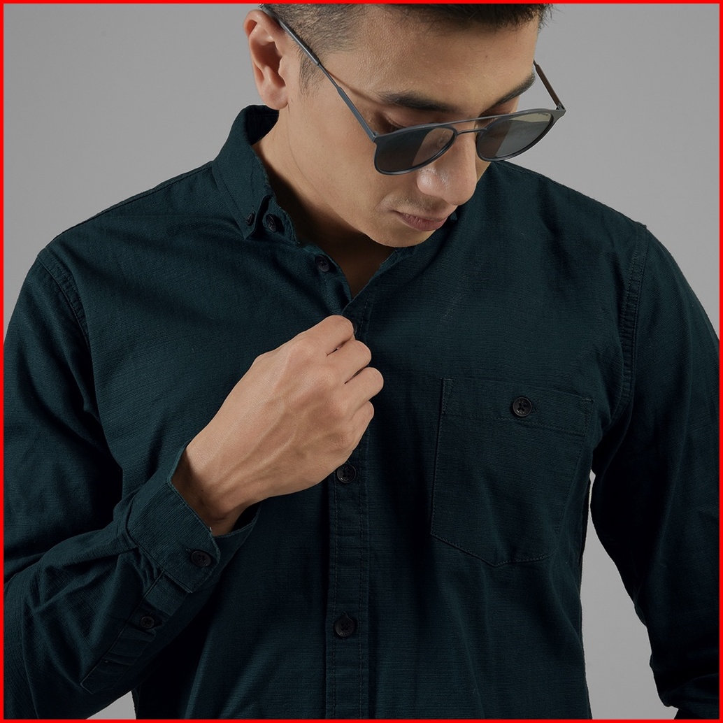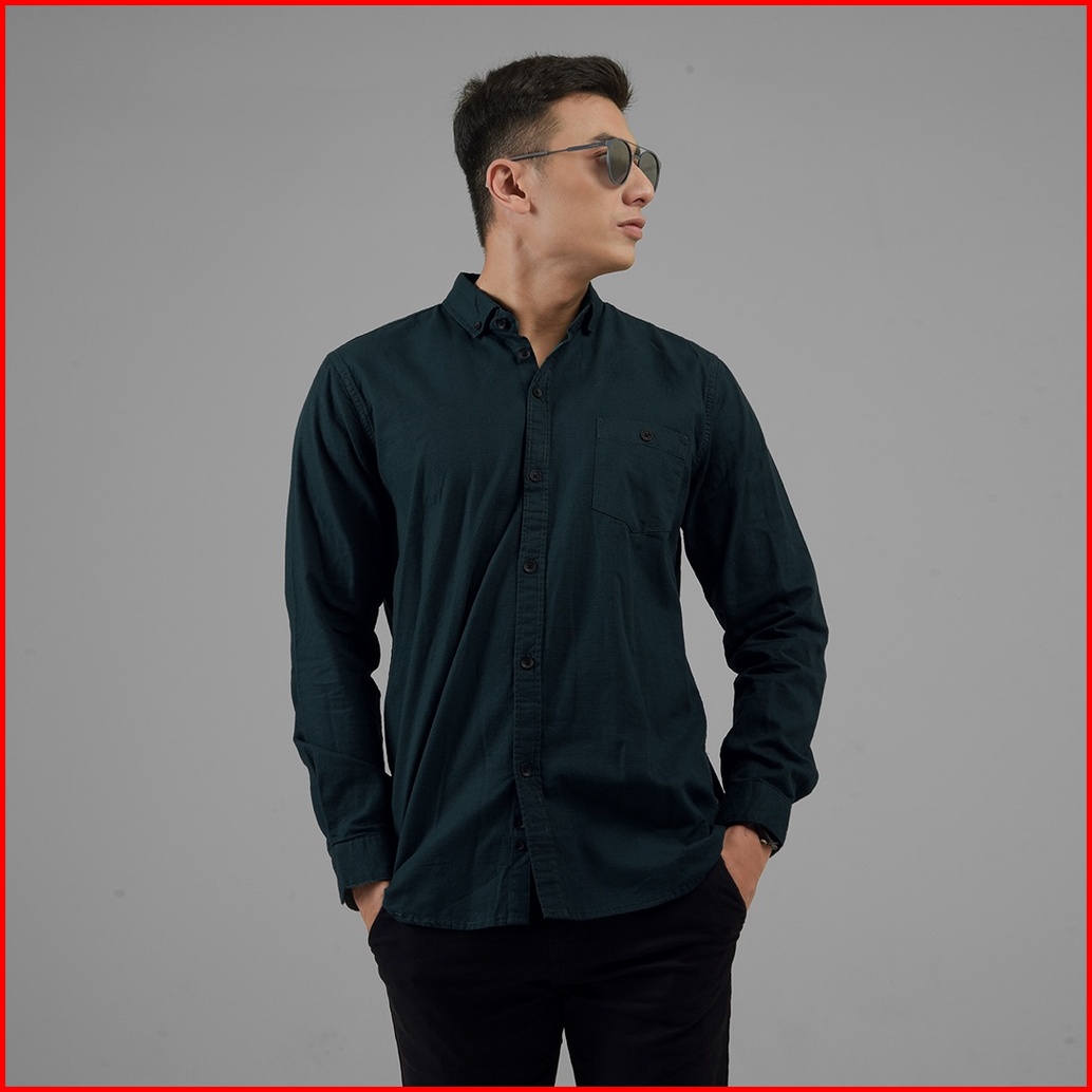 Dgm Kemeja Pria Polos Lengan Panjang Dark Green Kemeja Polos Kemeja 1412