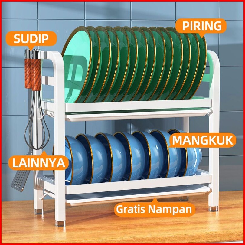 Rak Piring Wastafel Stainless Minimalis Rack Dapur Rak Cuci Peniris Cucian Pengering Piring Estetik 2 Susun Mini Kecil S