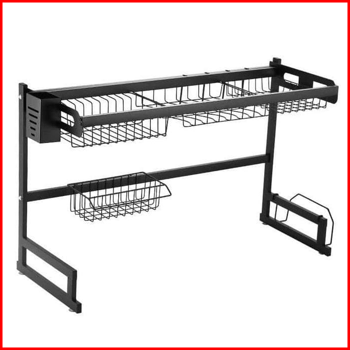 Rak Cuci Piring Wastafel Stainless Steel Hitam Rak Penyimpanan Piring Dapur Thaniaofficialstore