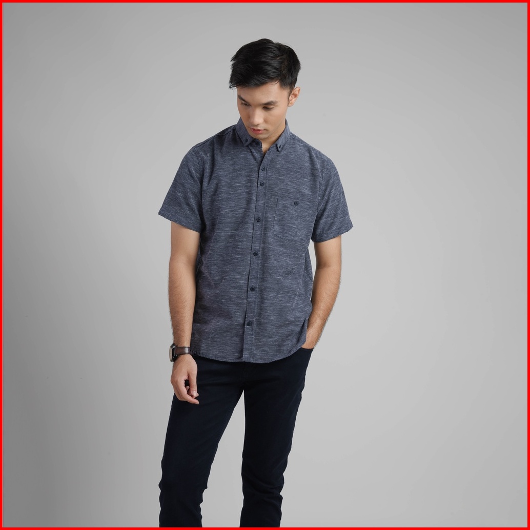 Dgm Kemeja Pria Lengan Pendek Polos Navy Fischeri Kemeja Polos Kemeja 1215