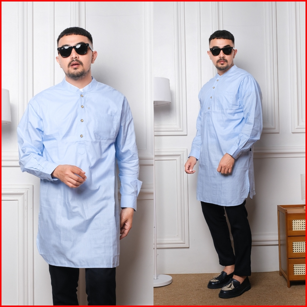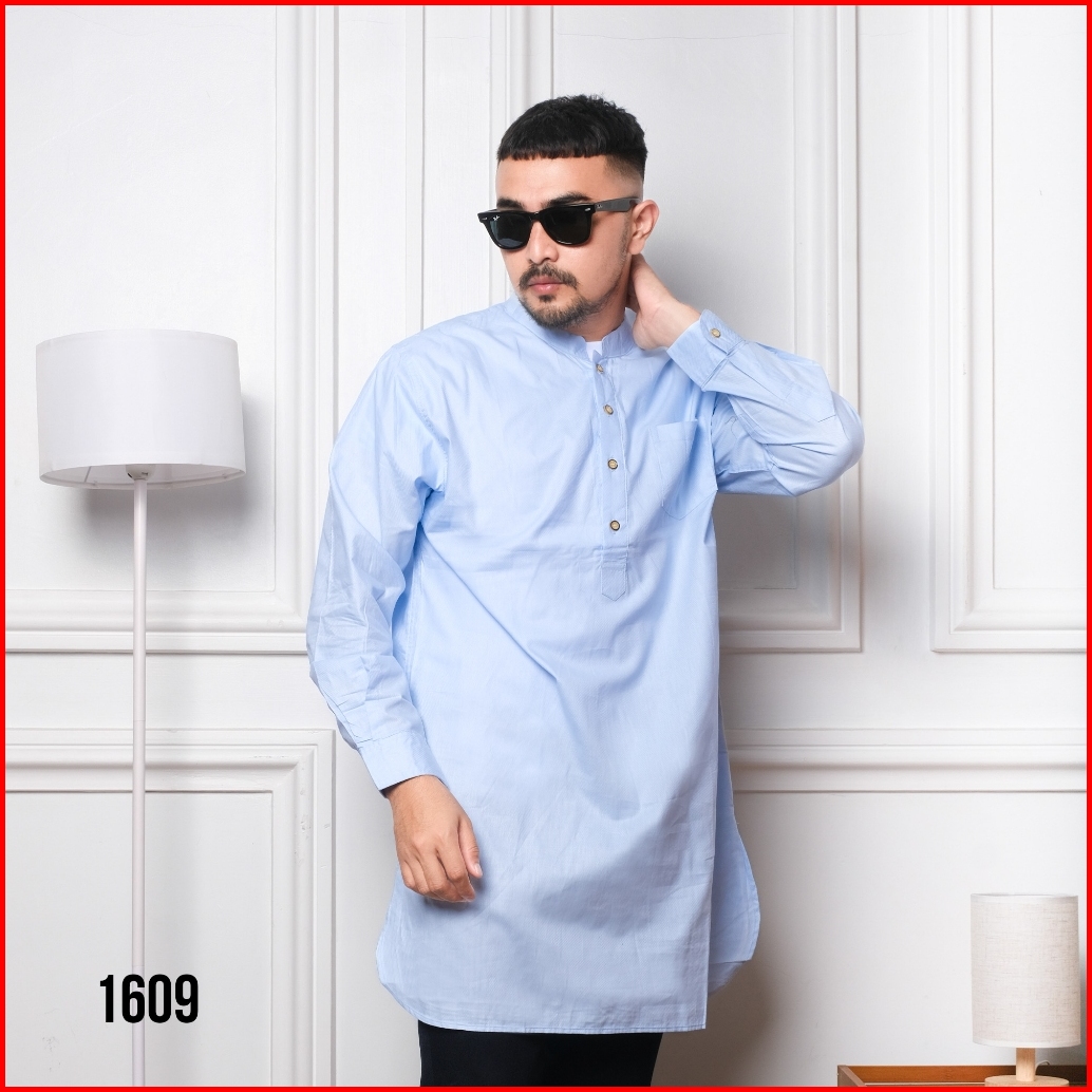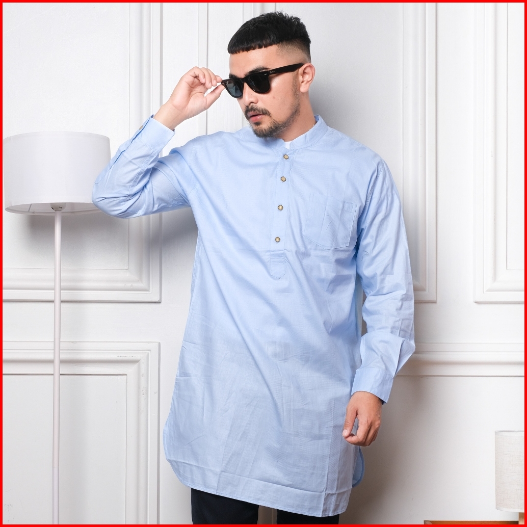 Dgm Fashion Kemeja Kurta Pakistan Polos Biru 1609