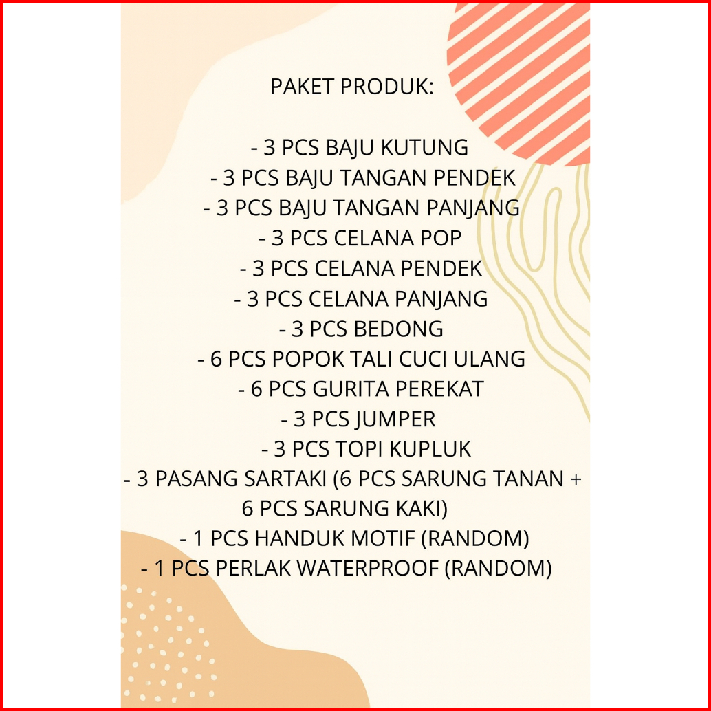 Paket Hemat 53 Pcs - Paket Lahiran Lengkap Sni Baju Celana Bedong Popok Gurita Jumper Bayi