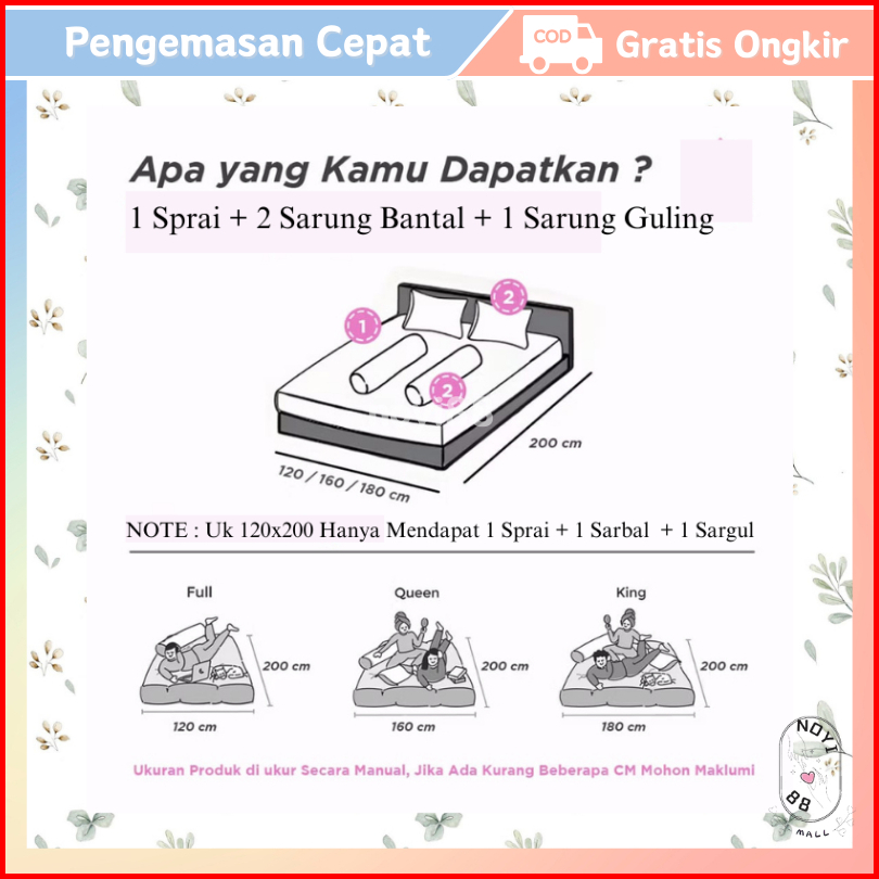 Noyi Sprei Modern Aestetic Set Sarung Bantal Dan Sarung Guling Lembut Adem Mudah Dibersihkan