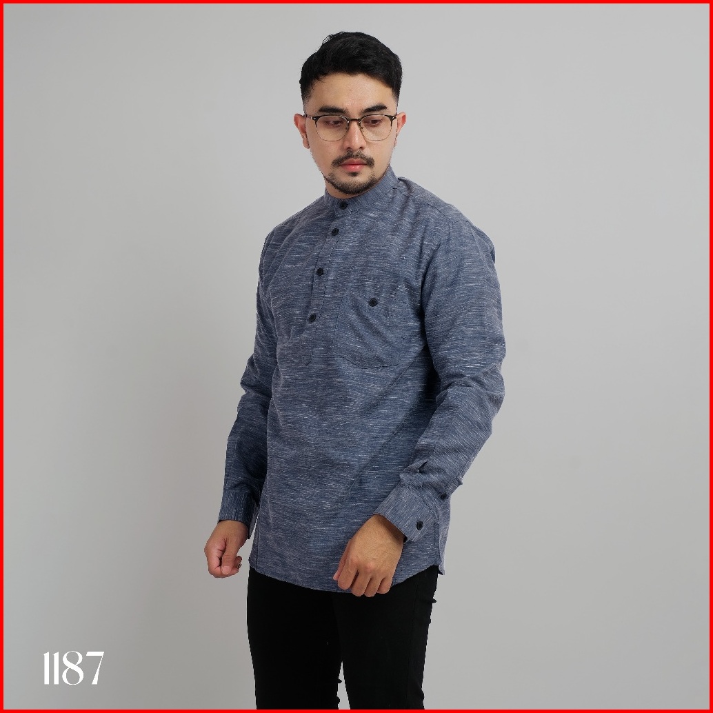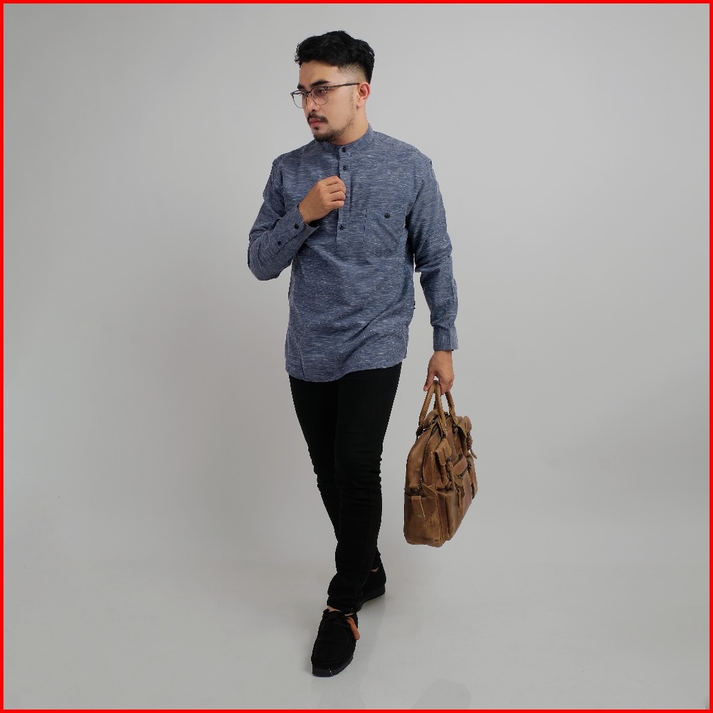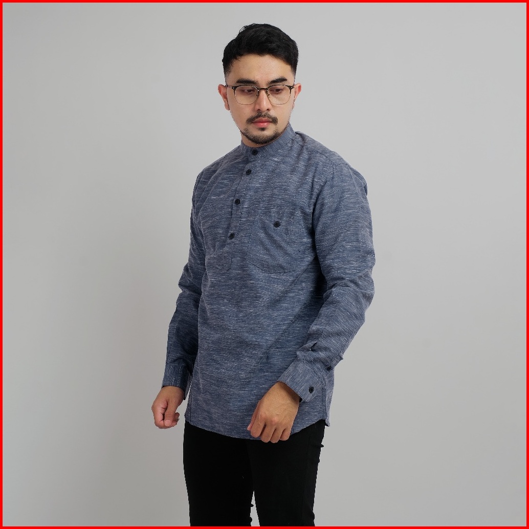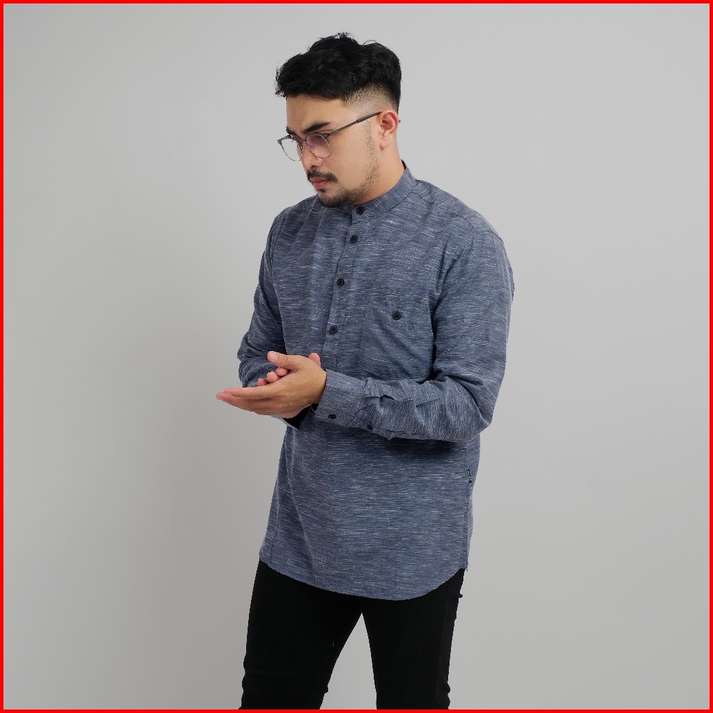 Dgm Kemeja Pria Koko Fischeri Panjang Navy 1187