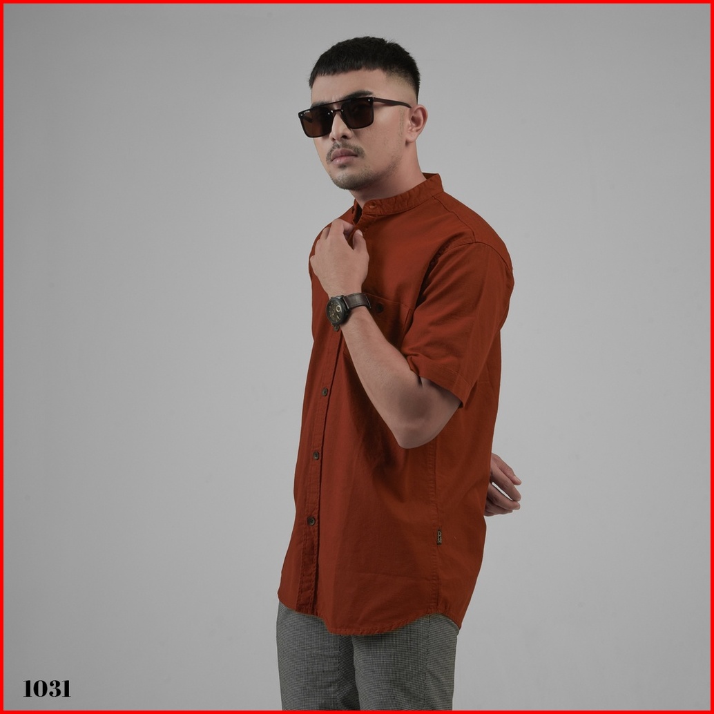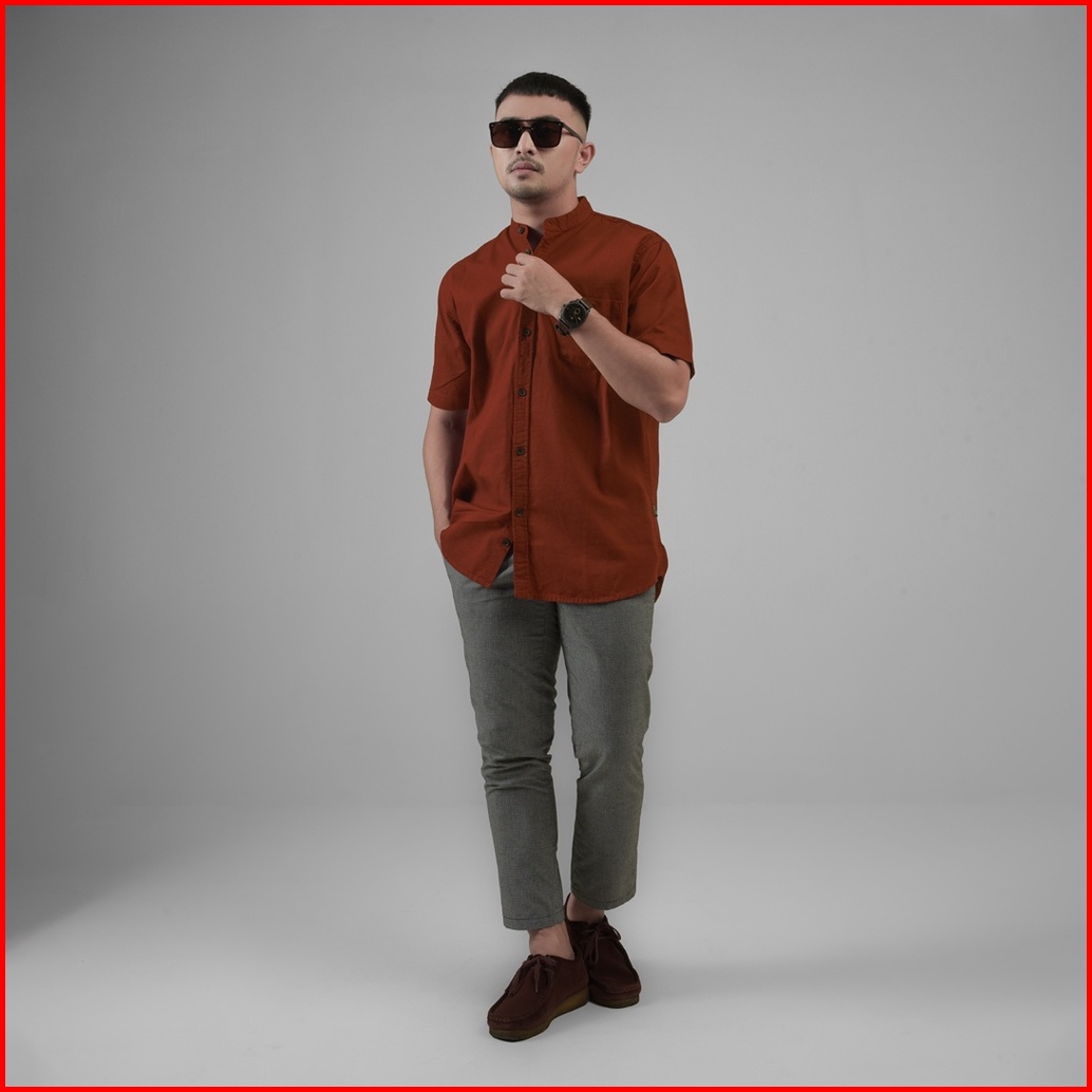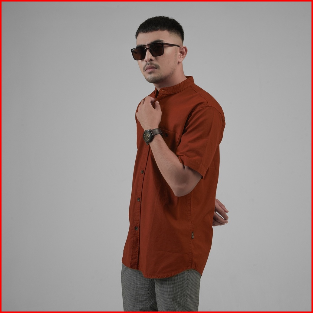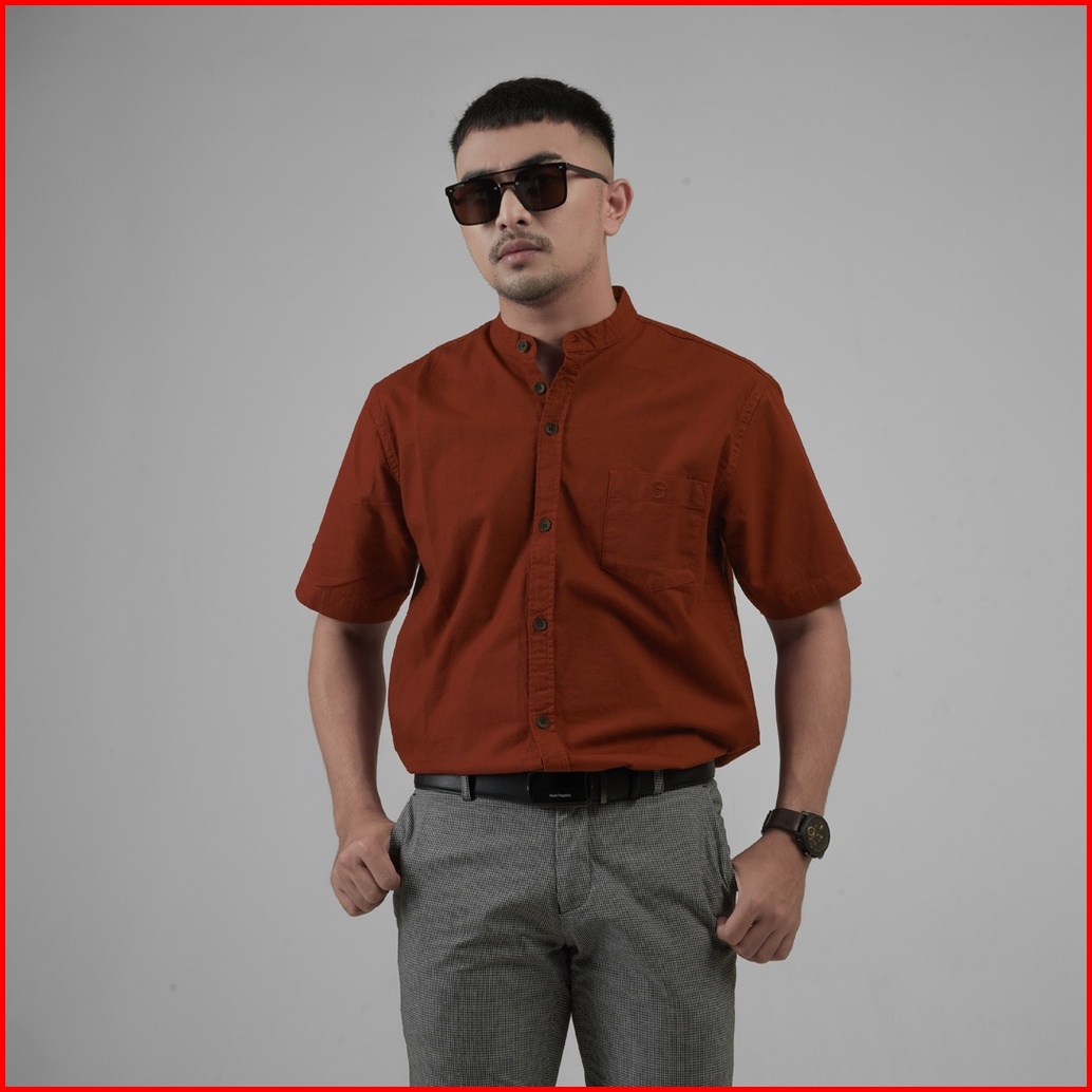 Dgm Kemeja Pria Basic Polos Pendek Jingga Premium 1031