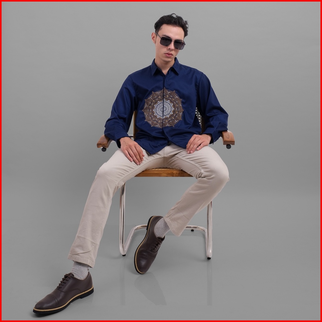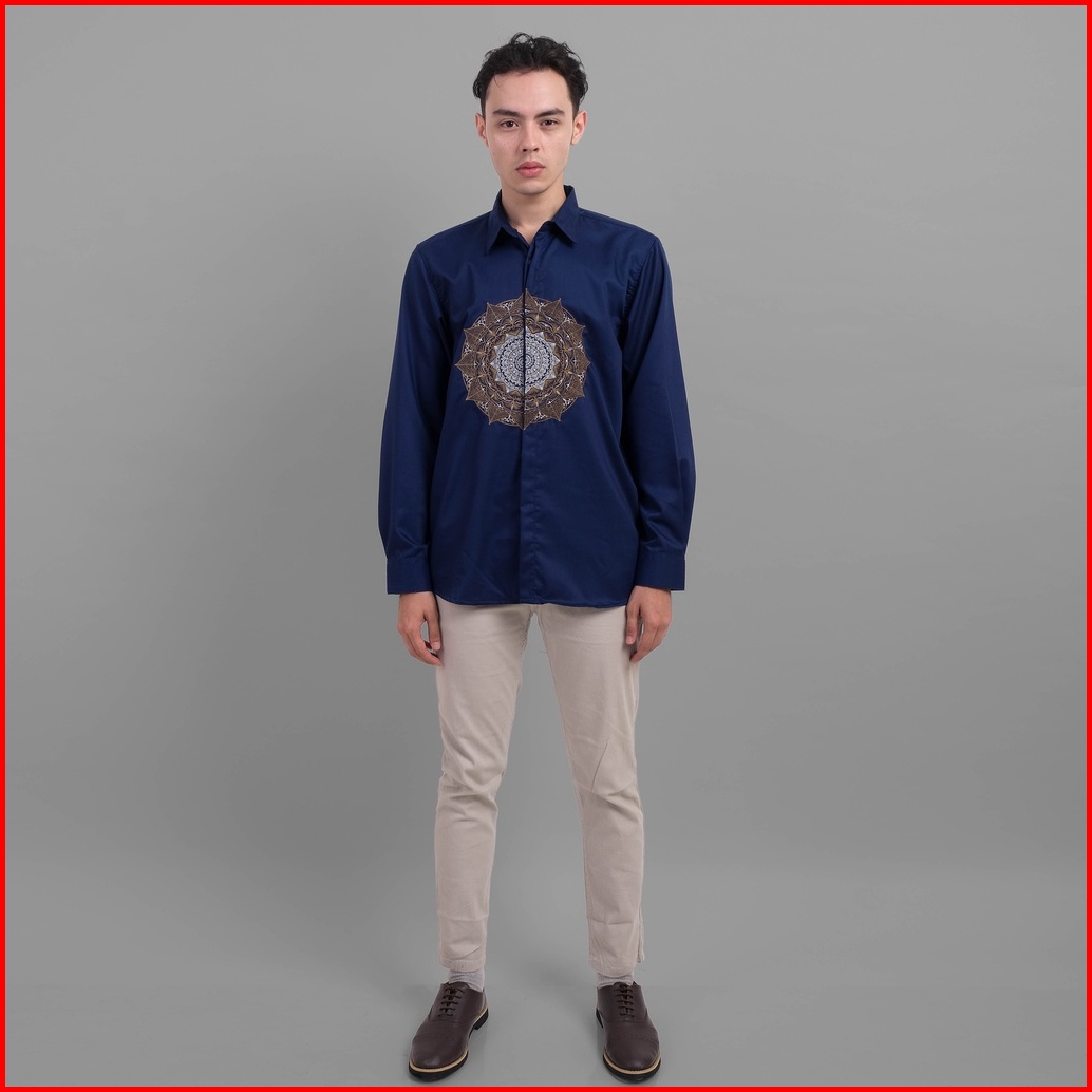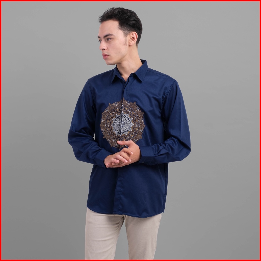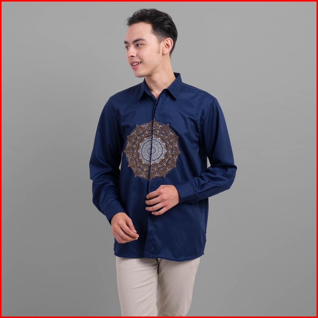 Dgm Kemeja Pria Lengan Panjang Premium Navy Toyobo Bordir Matahari 1908