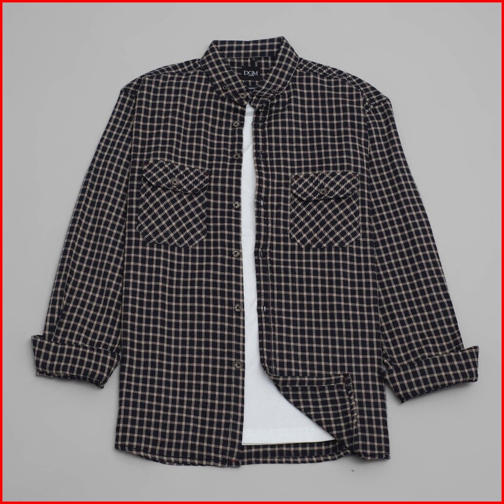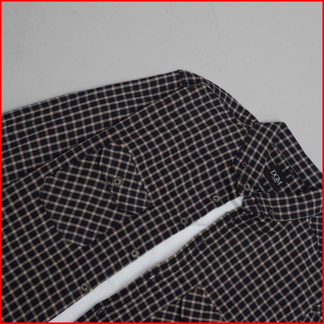 Dgm Kemeja Flanel Double Pocket Premium Hitam List Coklat Flanel Kantong Dua 1155