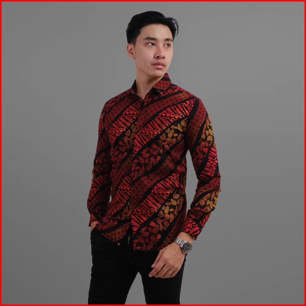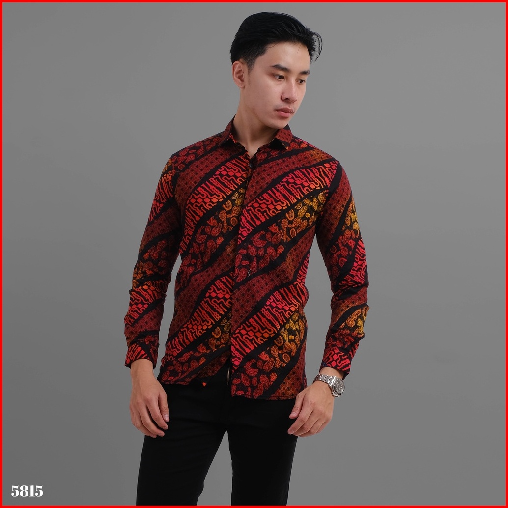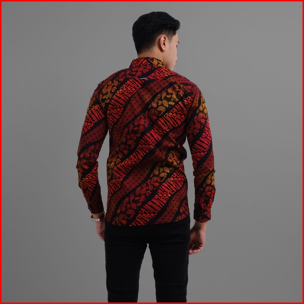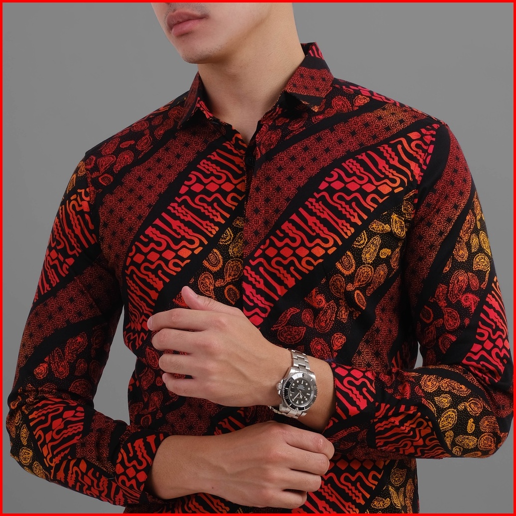 Dgm Fashion Kemeja Batik Big Size Lengan Panjang Pria Gradasi Merah Premium Jumbo 5815