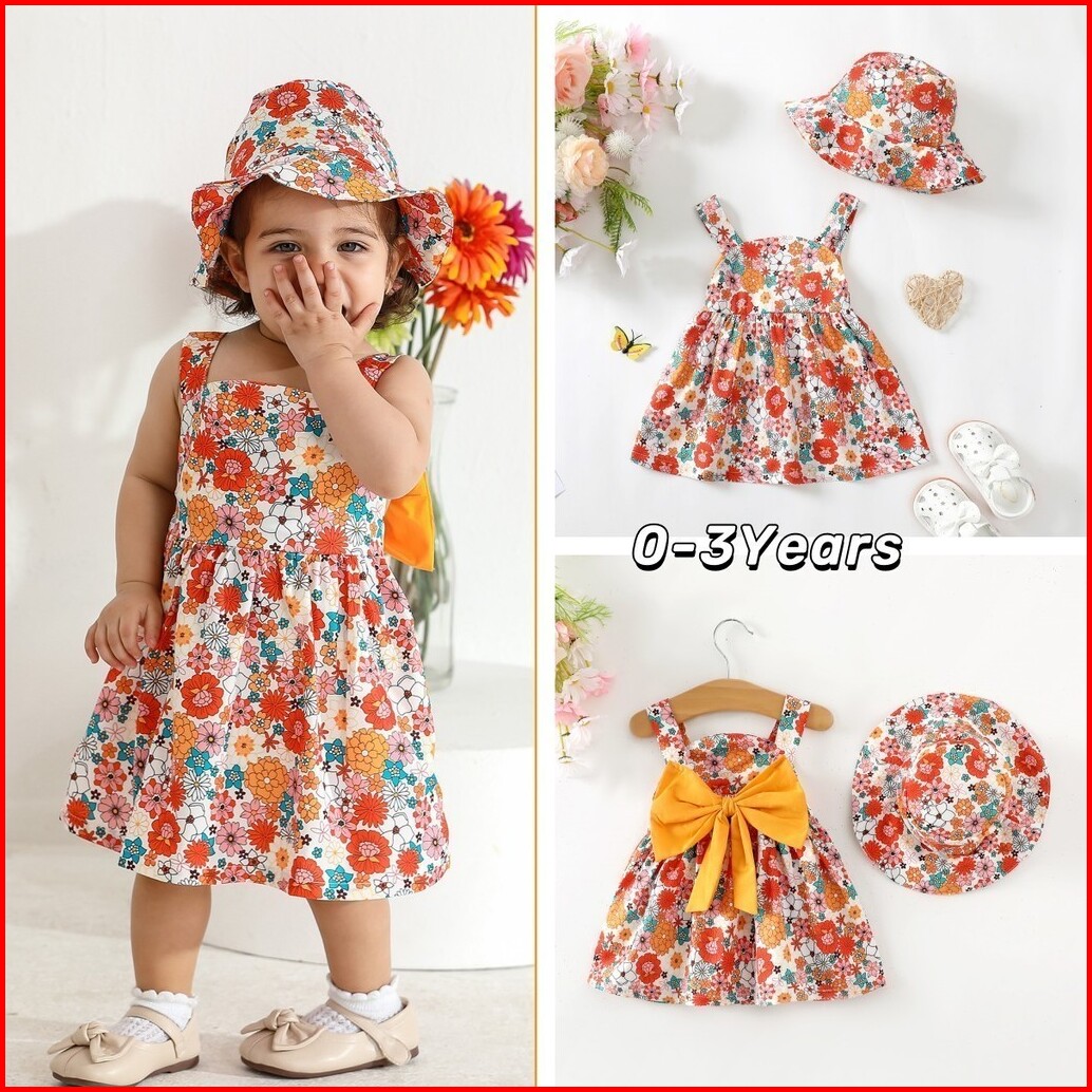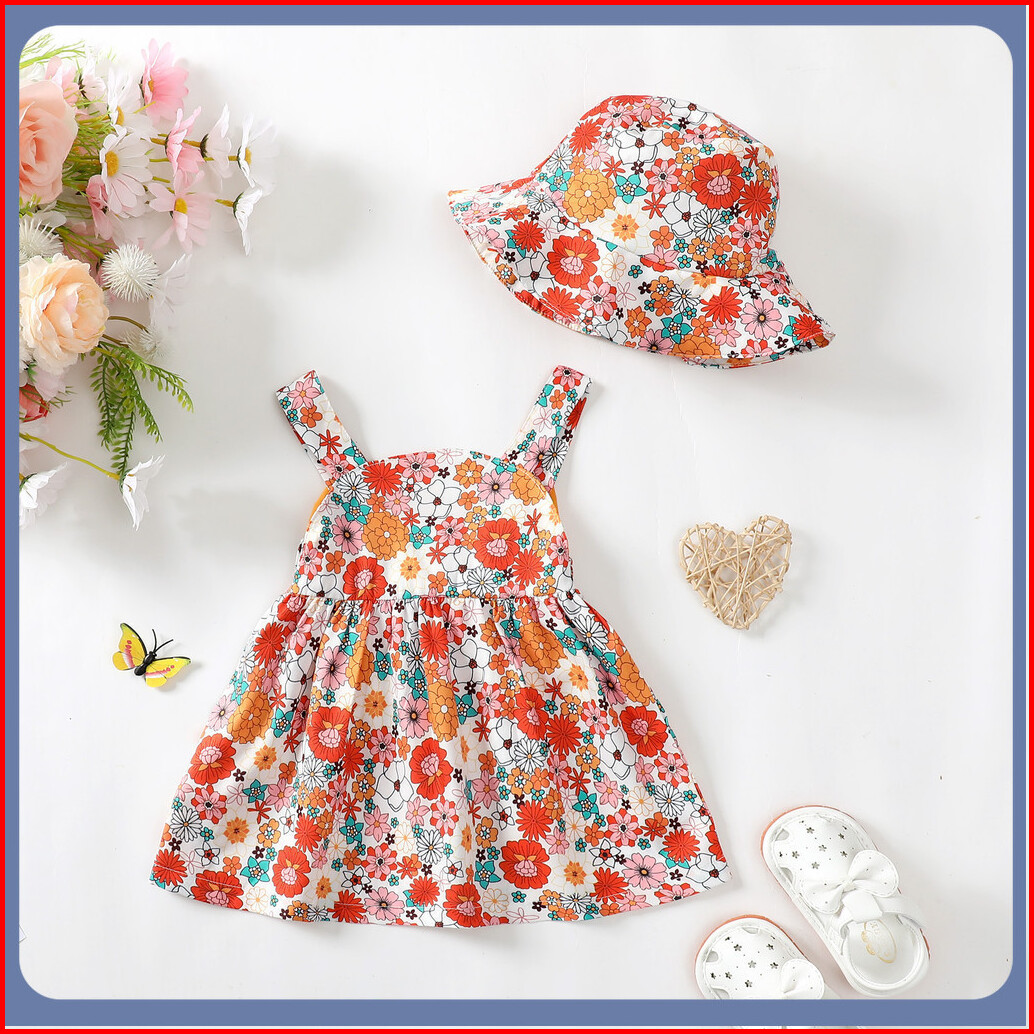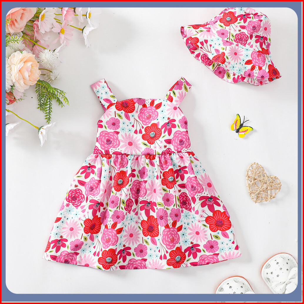 Haasya Kids Dress For Kid Girl 0-3 Years 2pcs Summer Clothes Set Sleeveless Floral Dress With Hat Fashion Daily Style Be