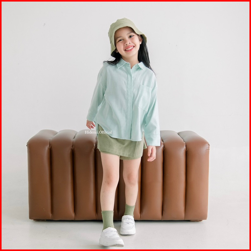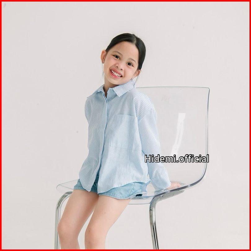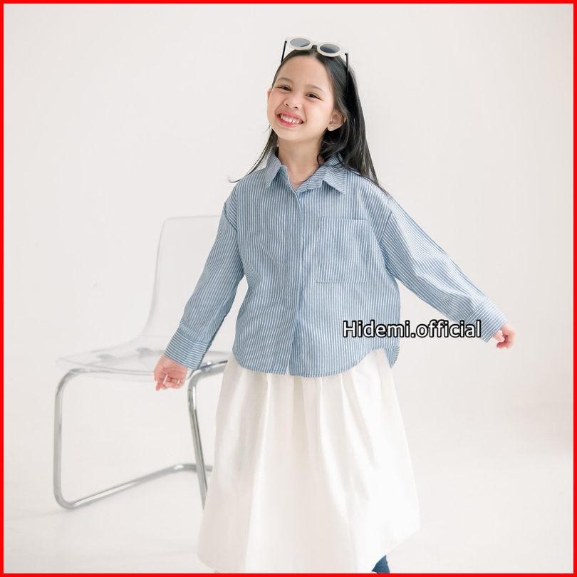 Alma Shirt Kemeja Salur Anak Lengan Panjang Baju Atasan Perempuan Kancing Kids Shirt Stripe H.26