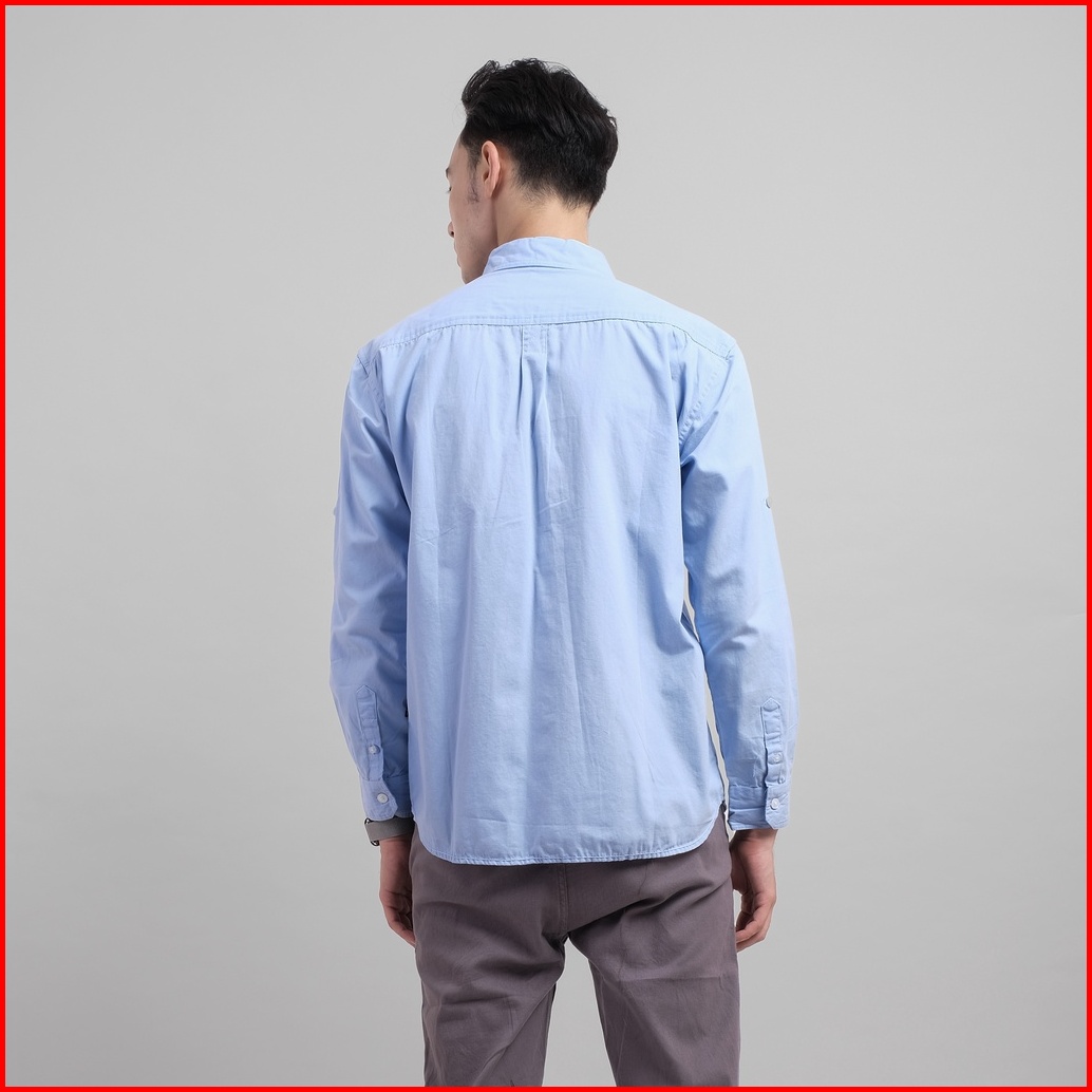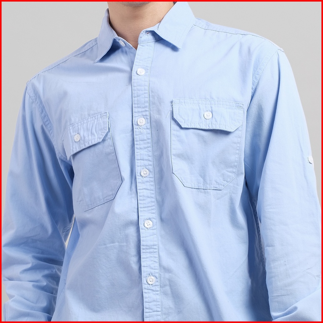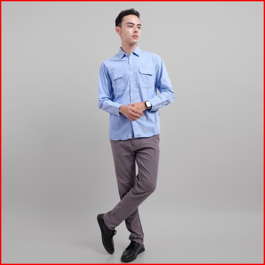 Dgm Kemeja Pria Lengan Panjang Polos Kemeja Polos Tactical Baby Canvas Blue Double Pocket 1499