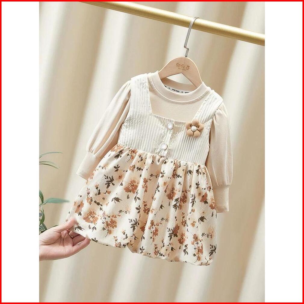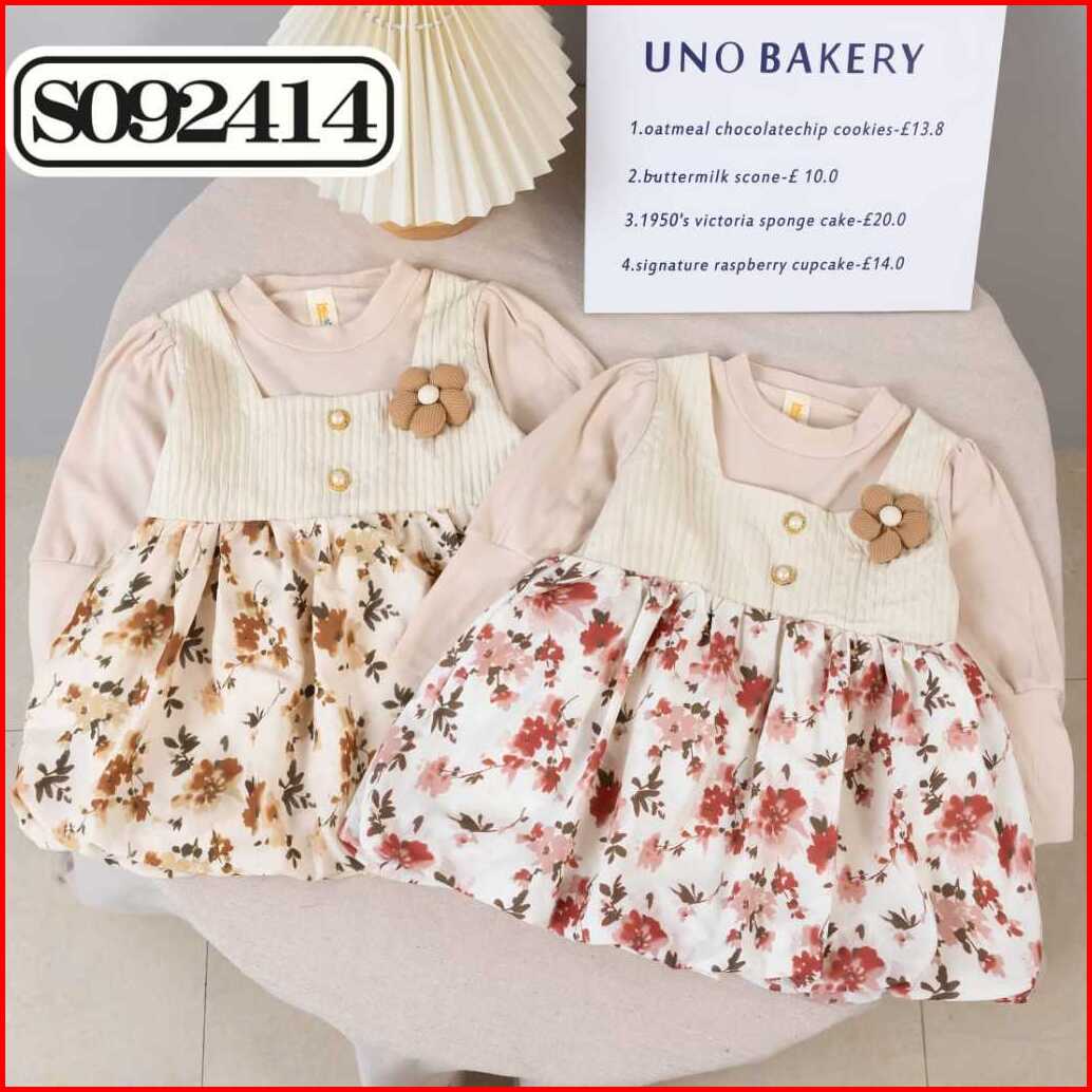 Gaun Impor Motif Bunga Bunga Cantik Anak Perempuan Usia 0-4 Tahun