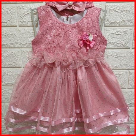 Dress Pesta Bayi 6-12 Bulan Brokat Polkadot