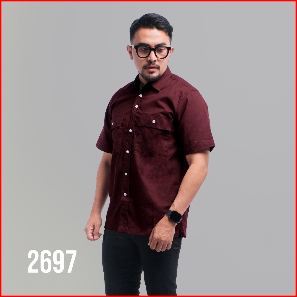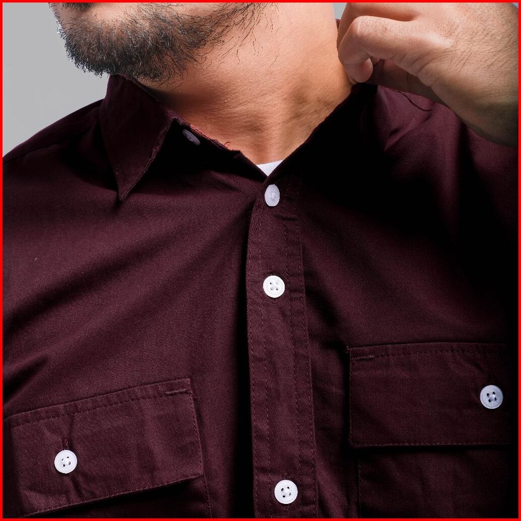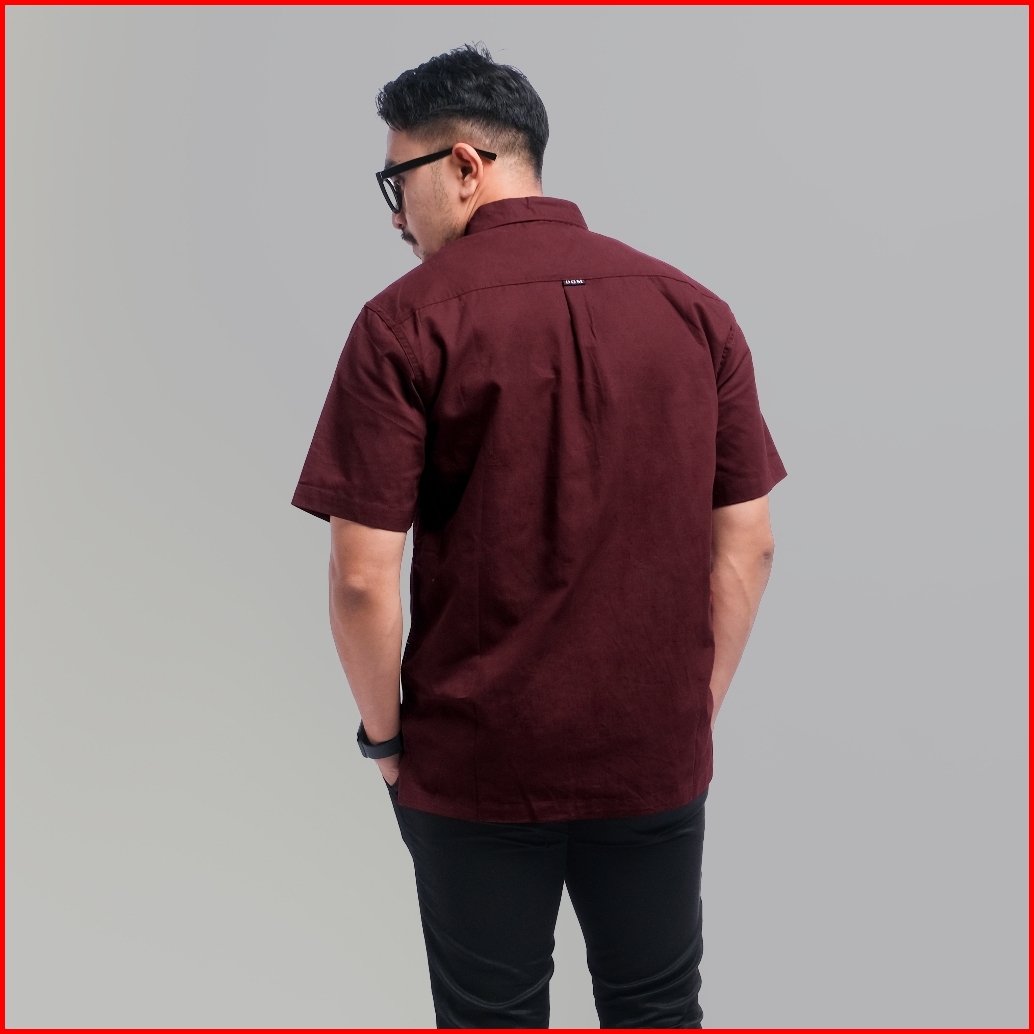 Dgm Kemeja Pria Polos Double Pocket Lengan Pendek Katun Twill 30s Premium Workshirt Kemeja Kerja Maroon 2697
