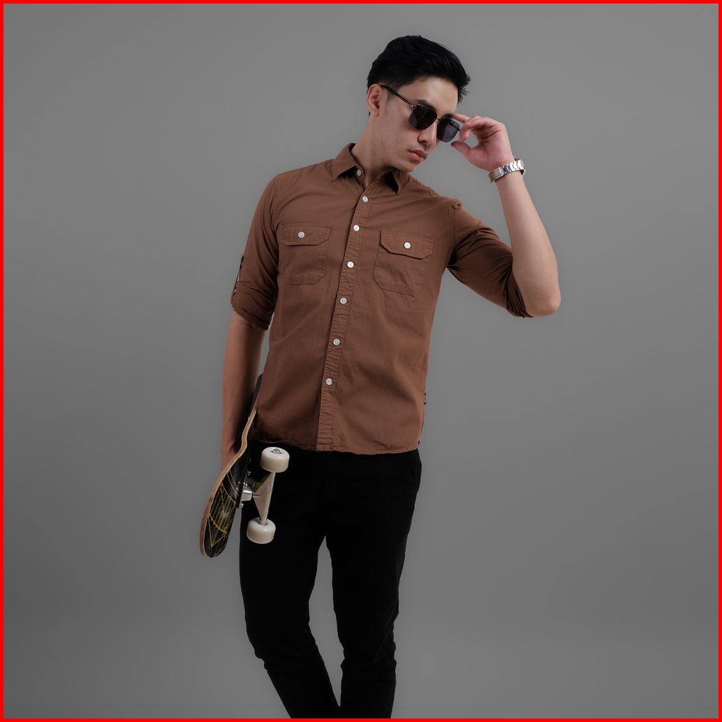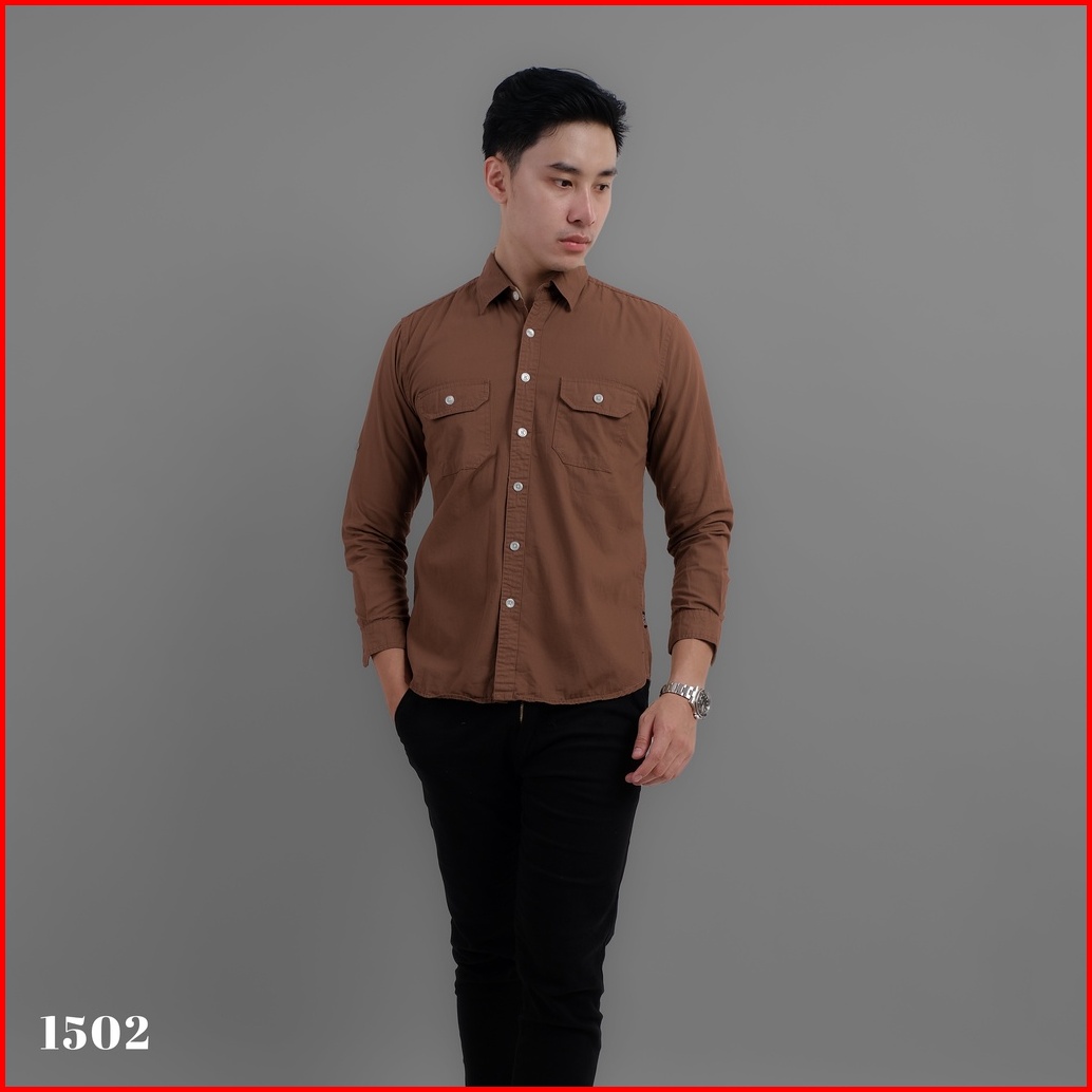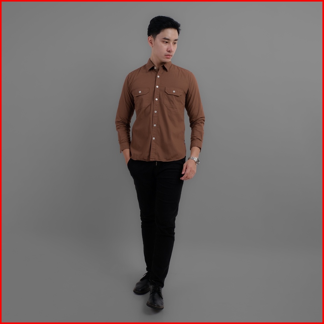 Dgm Kemeja Polos Pria Tactical Baby Canvas Lengan Panjang Premium Double Pocket 1502