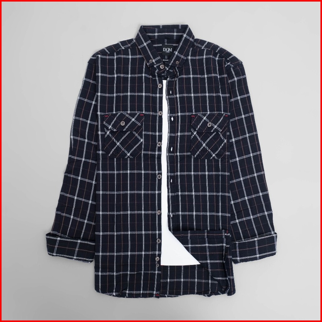 Dgm Kemeja Flanel Pria Lengan Panjang Double Pocket Casual Flanel Kantong Dua 1877