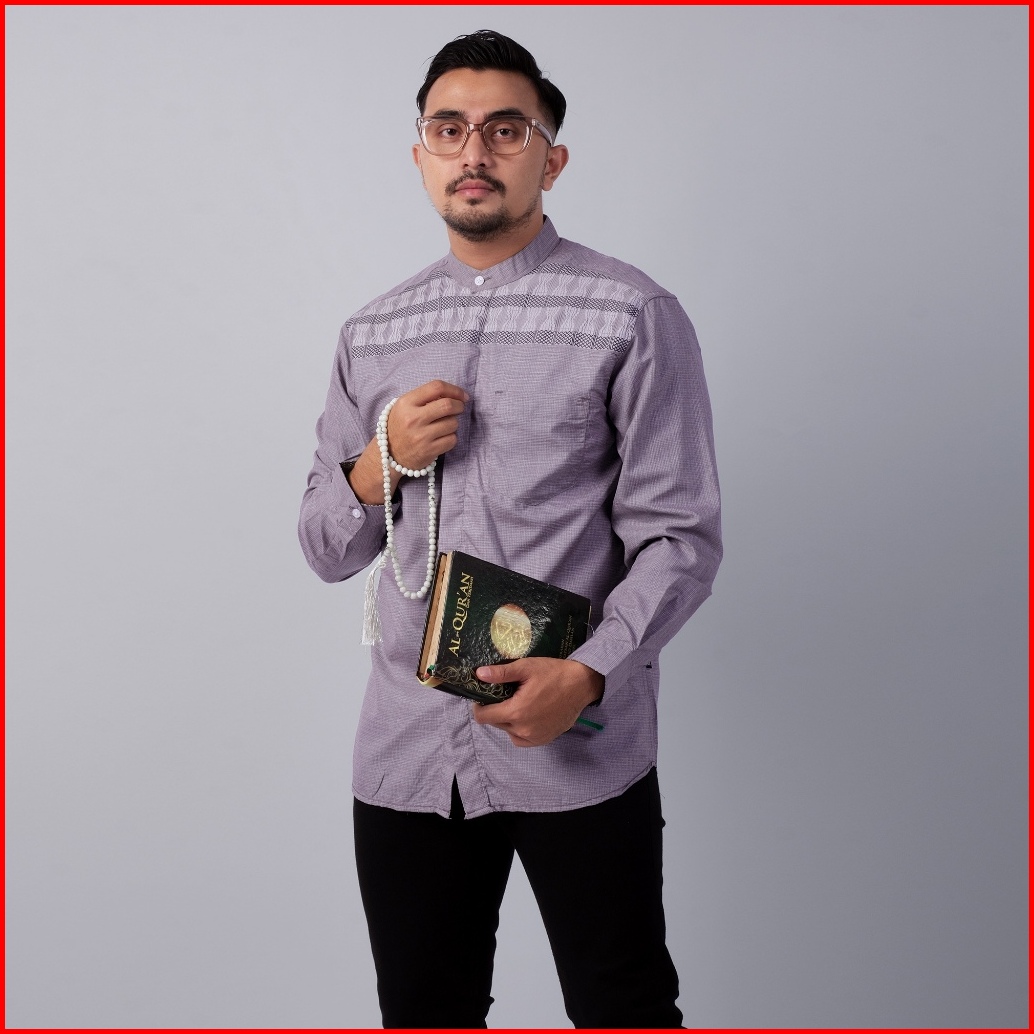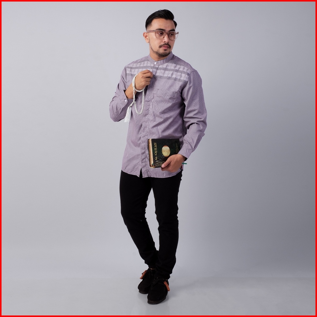 Dgm Baju Koko Pria Lengan Panjang Bordir Premium Soft Lavender Motif Bordir Dada Baju Koko 2755