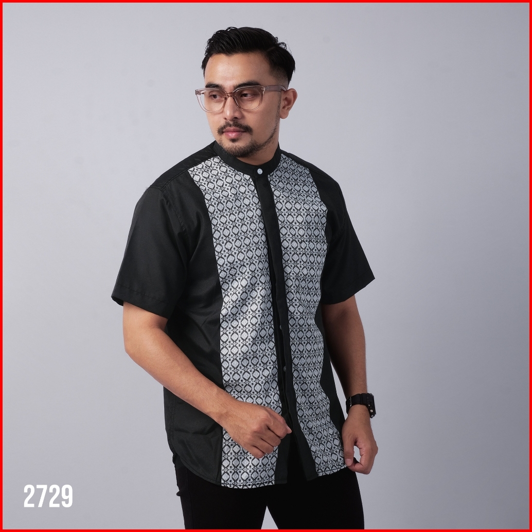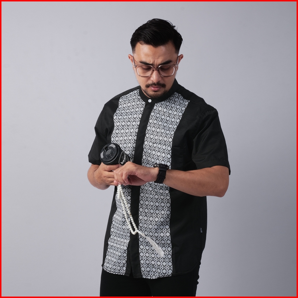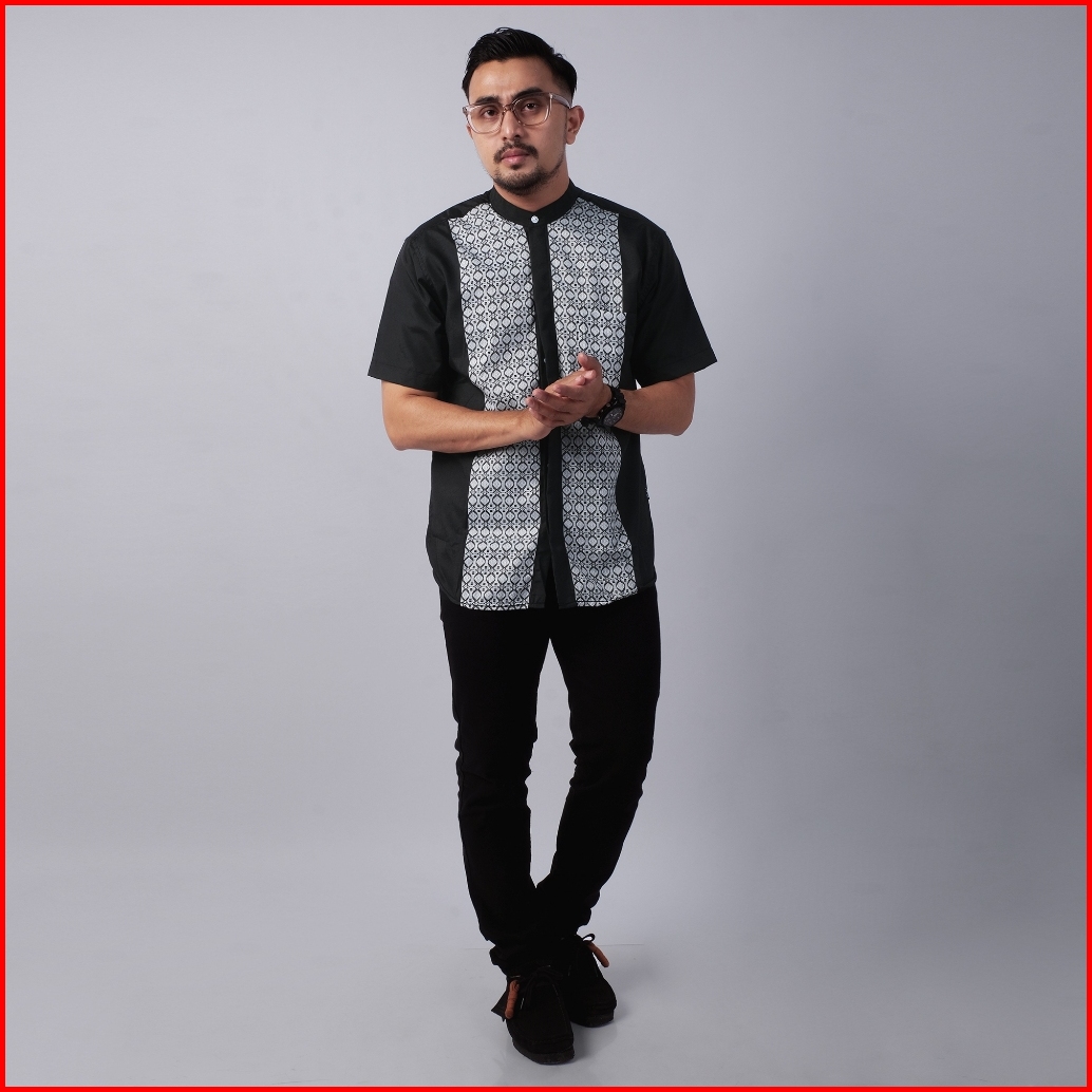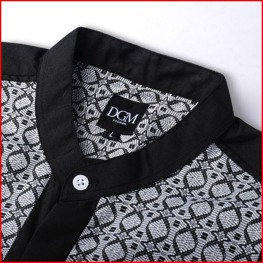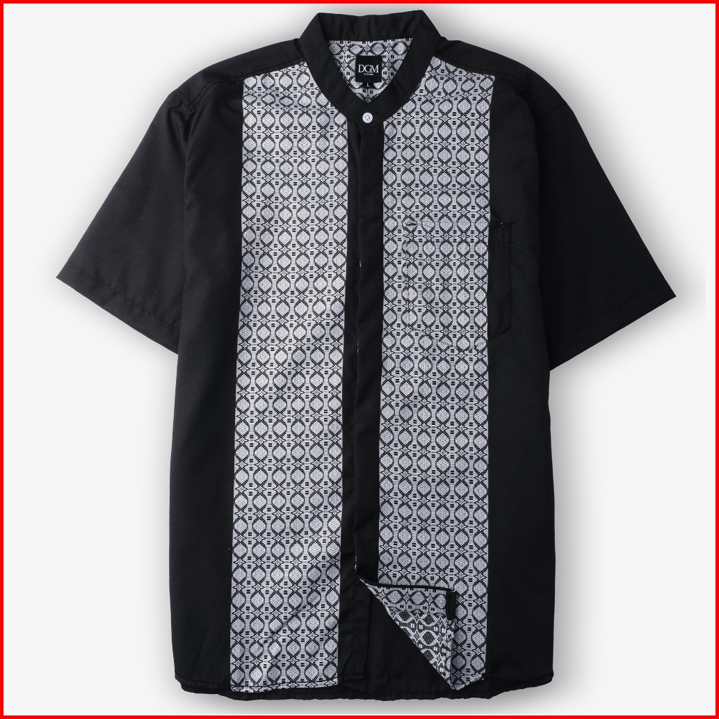 Dgm Baju Koko Pria Lengan Pendek Bordir Premium Hitam Motif Geometris Baju Koko 2729