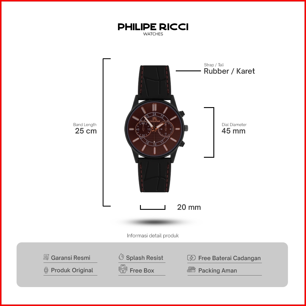 Philipe Ricci Jam Tangan Pria Karet Analog Terbaru Keren Ori Stylish Jhtk Men Watches Free Baterai