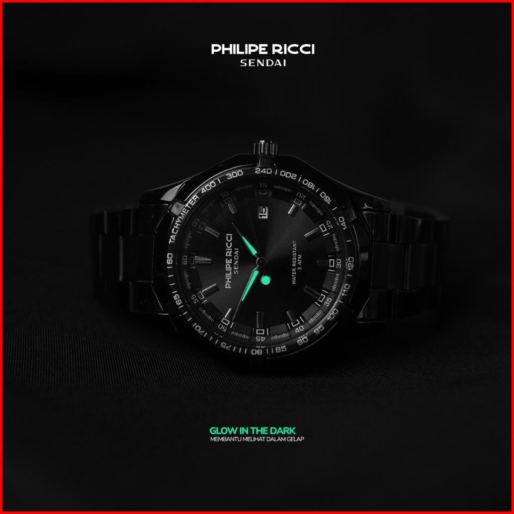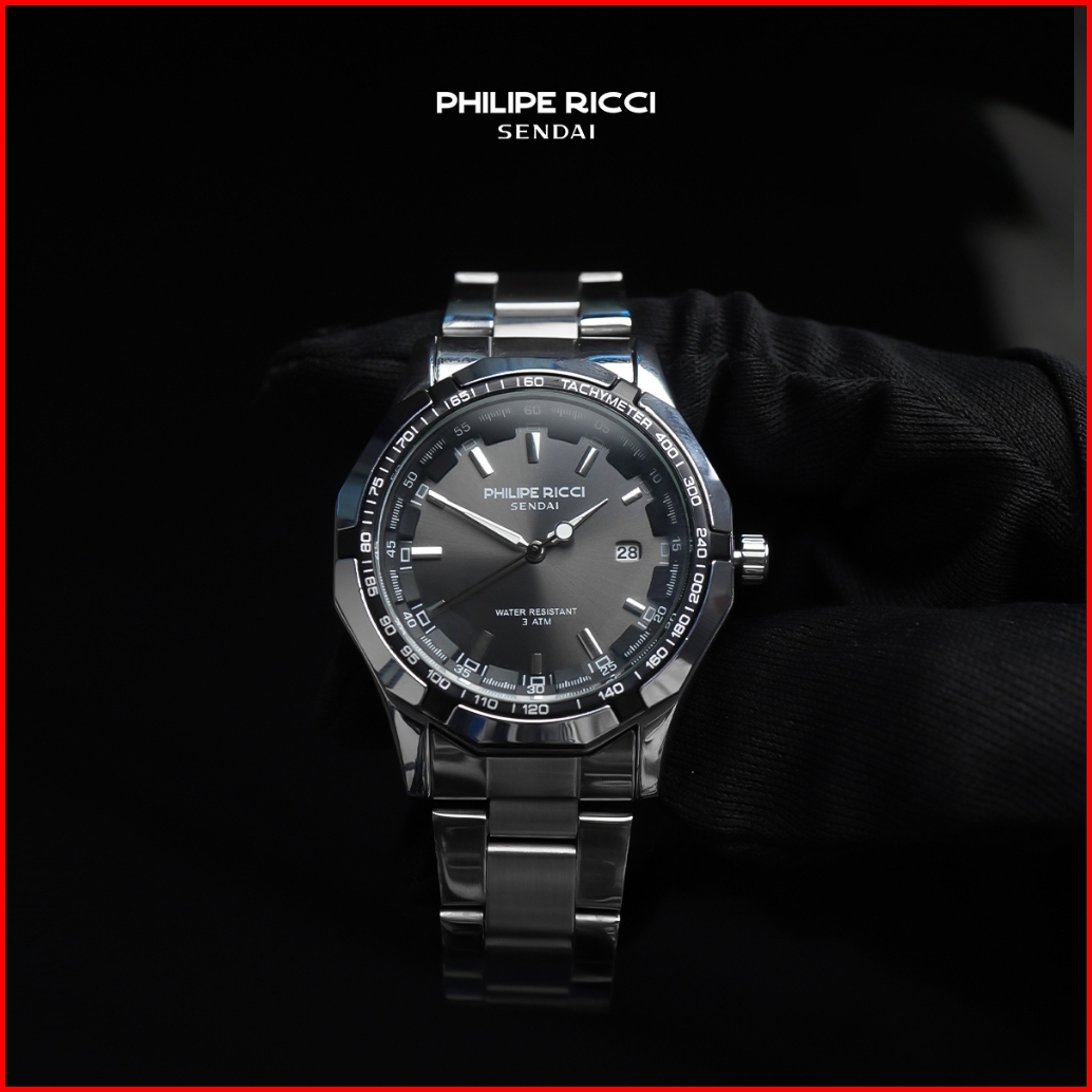 Philipe Ricci Sendai Jam Tangan Pria Rantai Besi Water Resist 100 Ori Keren Modern 6342 Free Box
