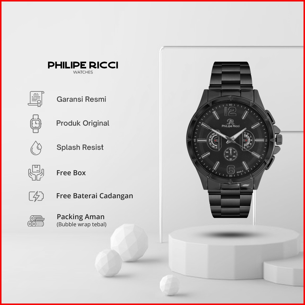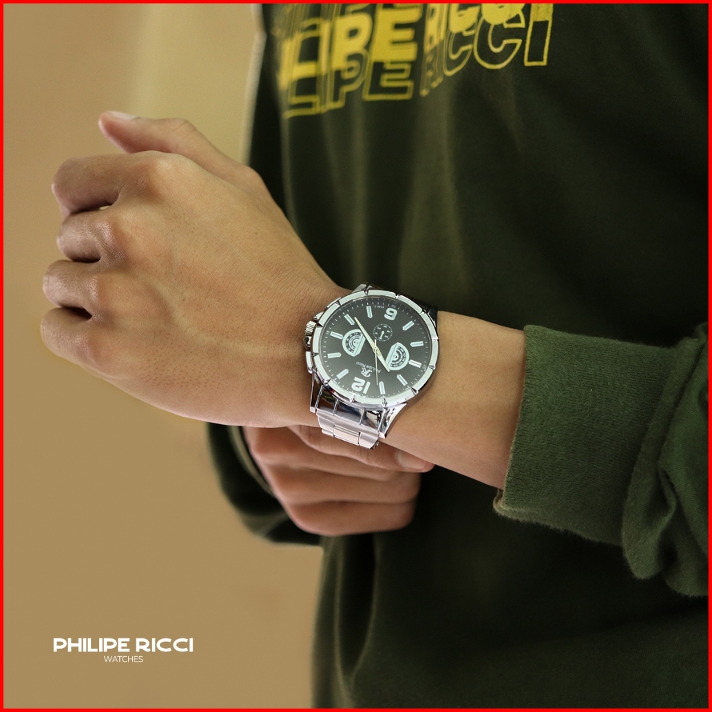 Philipe Ricci Jam Tangan Pria Rantai Analog Model Elegan Terbaru Kasual Modern 6048b Business Men Watches Free Box