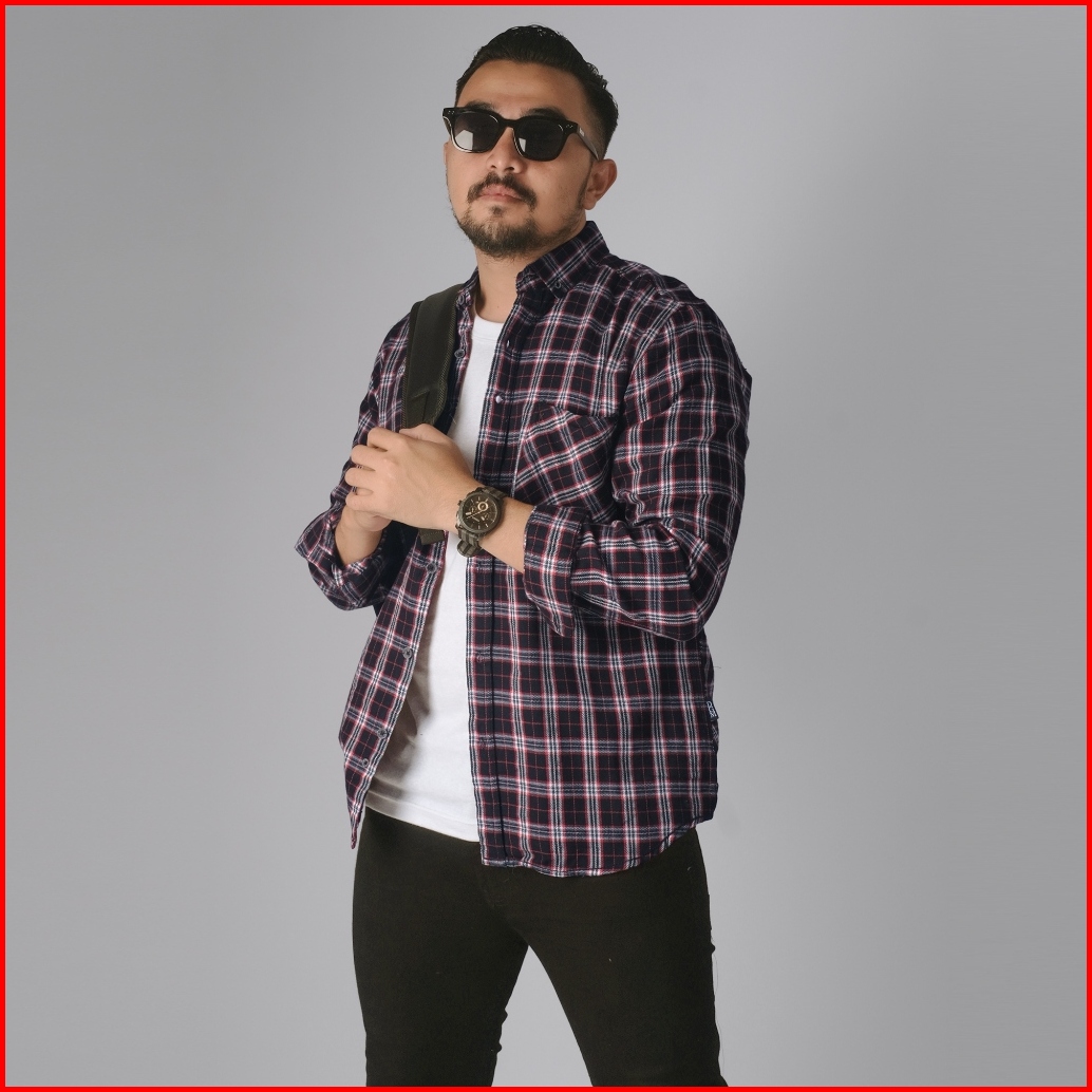 Dgm Kemeja Pria Flanel Panjang Premium Kotak Kotak Kemeja Flanel Hitam Merah 2652