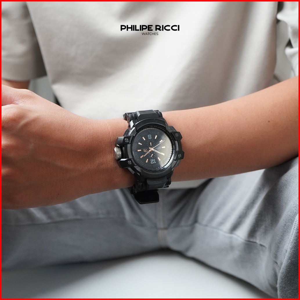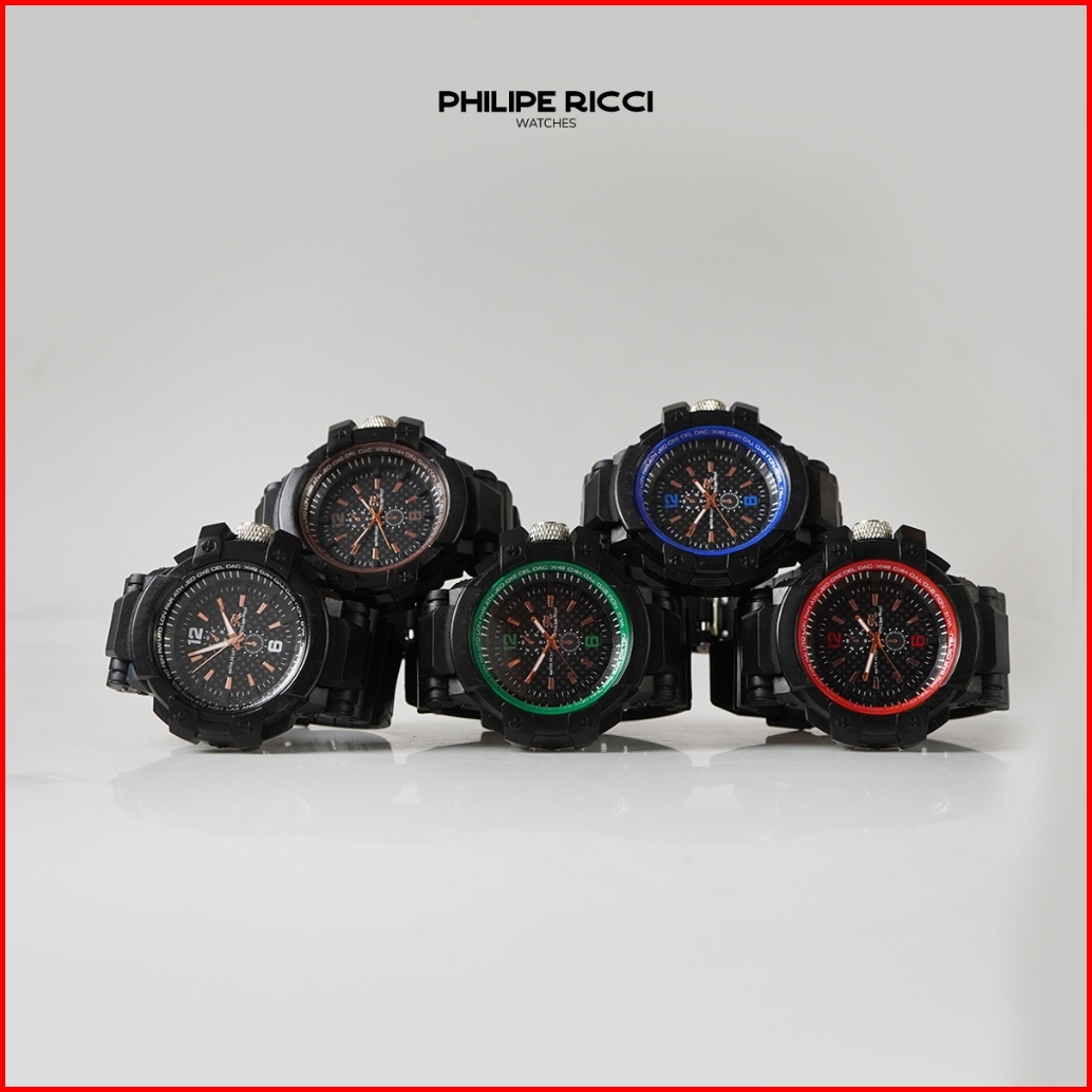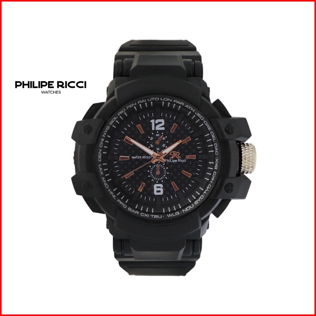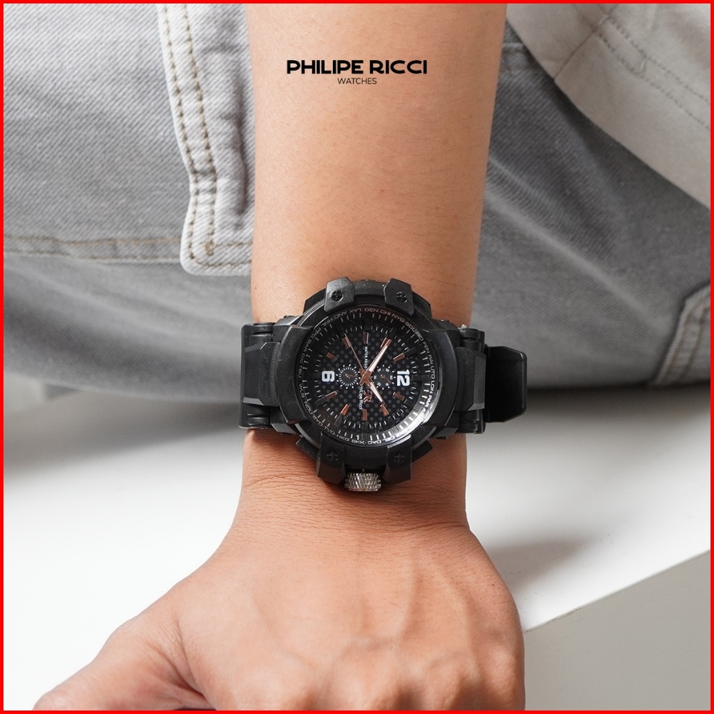 Philipe Ricci Jam Tangan Pria Karet Hitam Sporty Keren Terbaru Modern Xl 1921d Men Watches Free Box