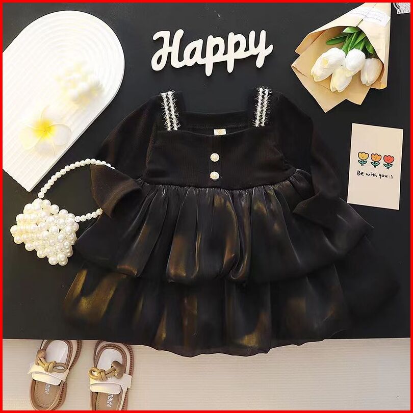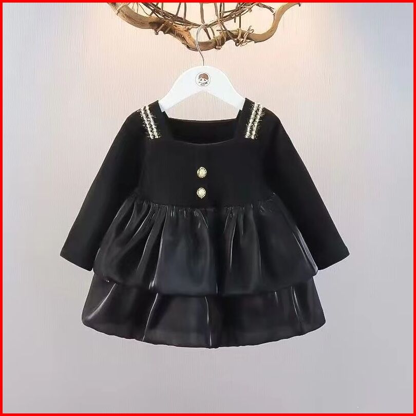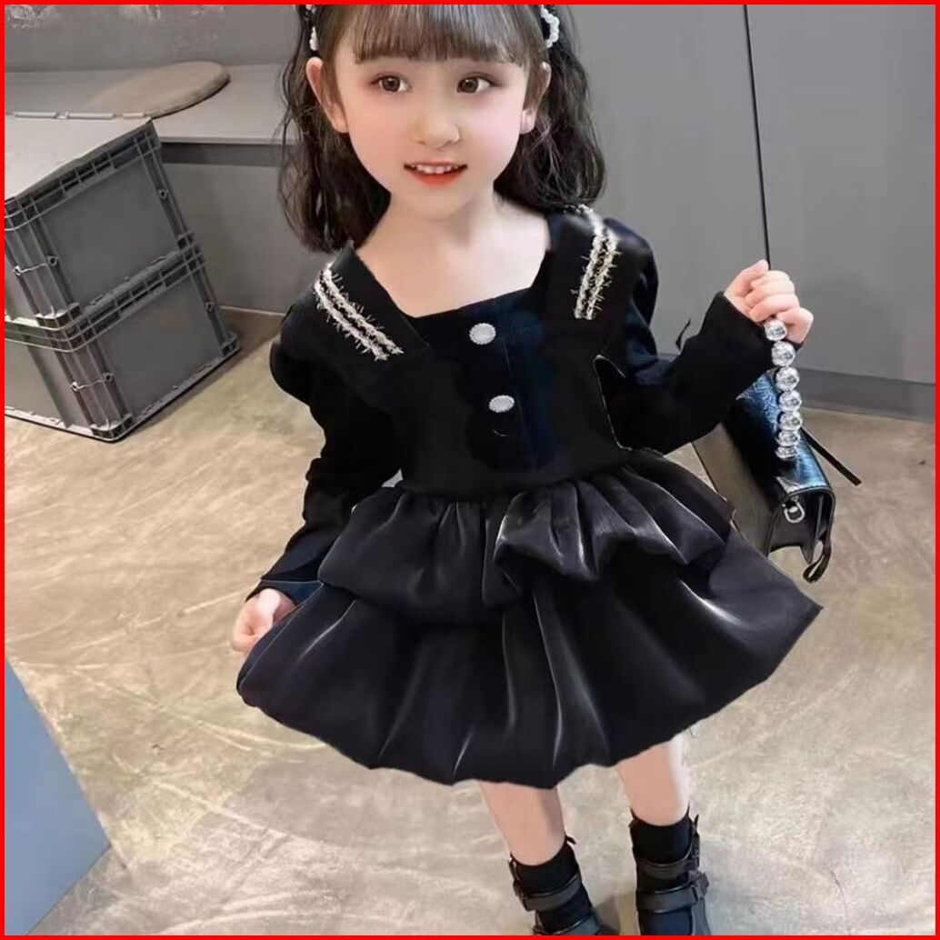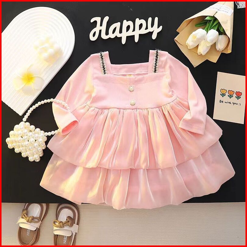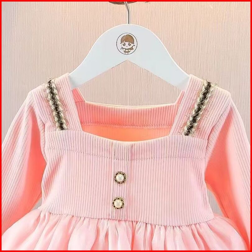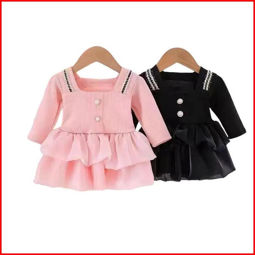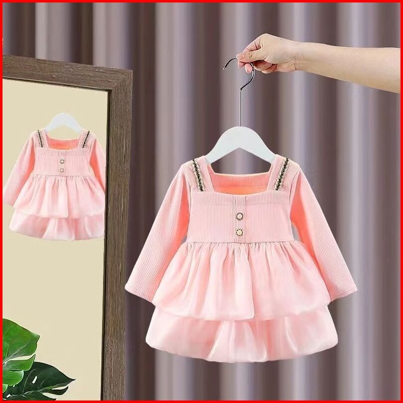 Kf Cat Dress Anak Perempuan Lengan Panjang Bahan Katun Motif Polos Korea Style Usia 6 Bulan-3 Tahun