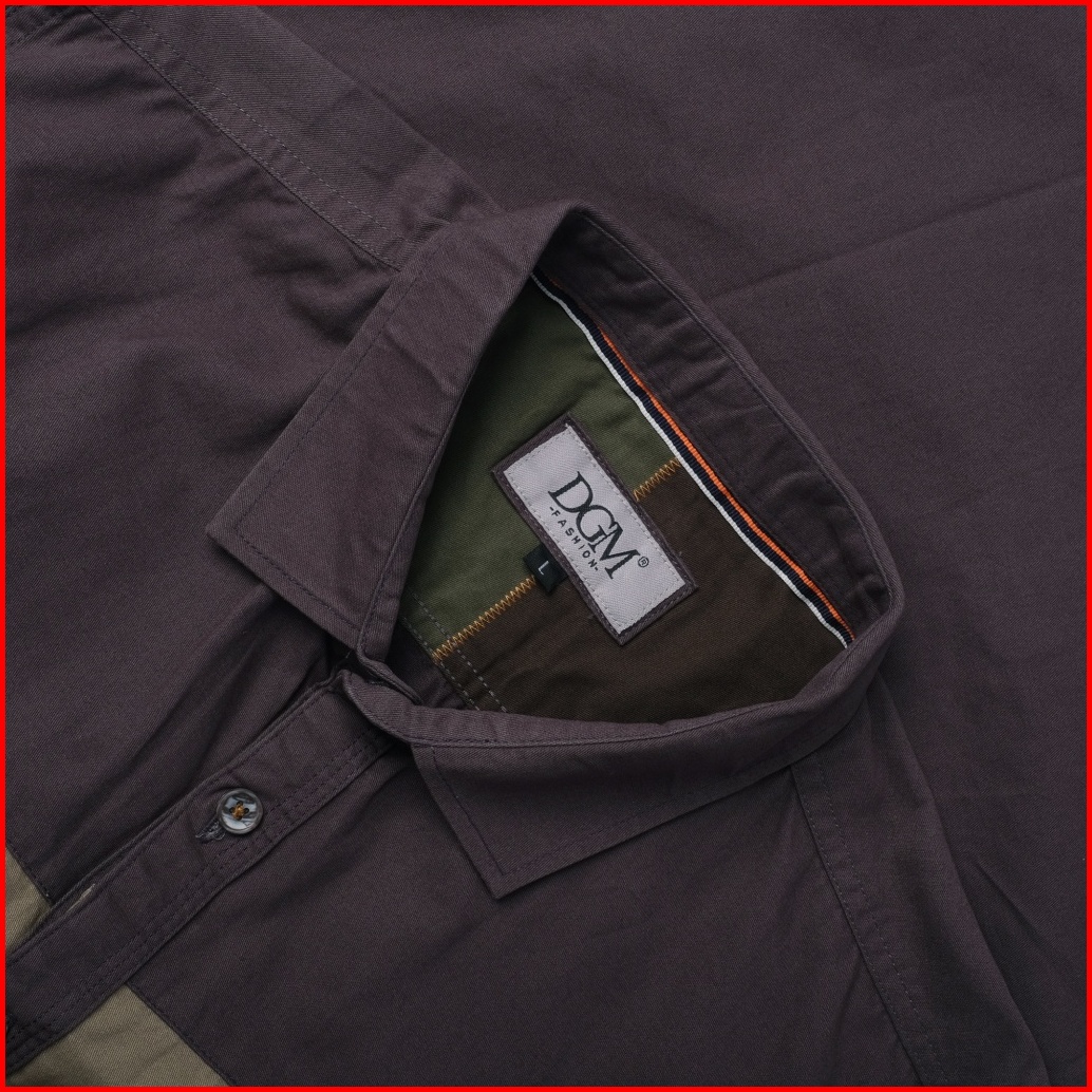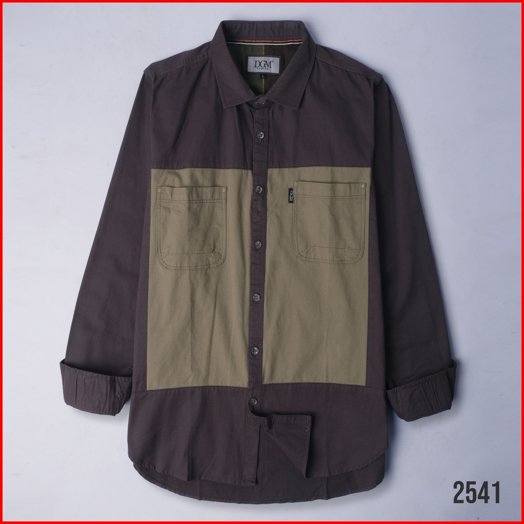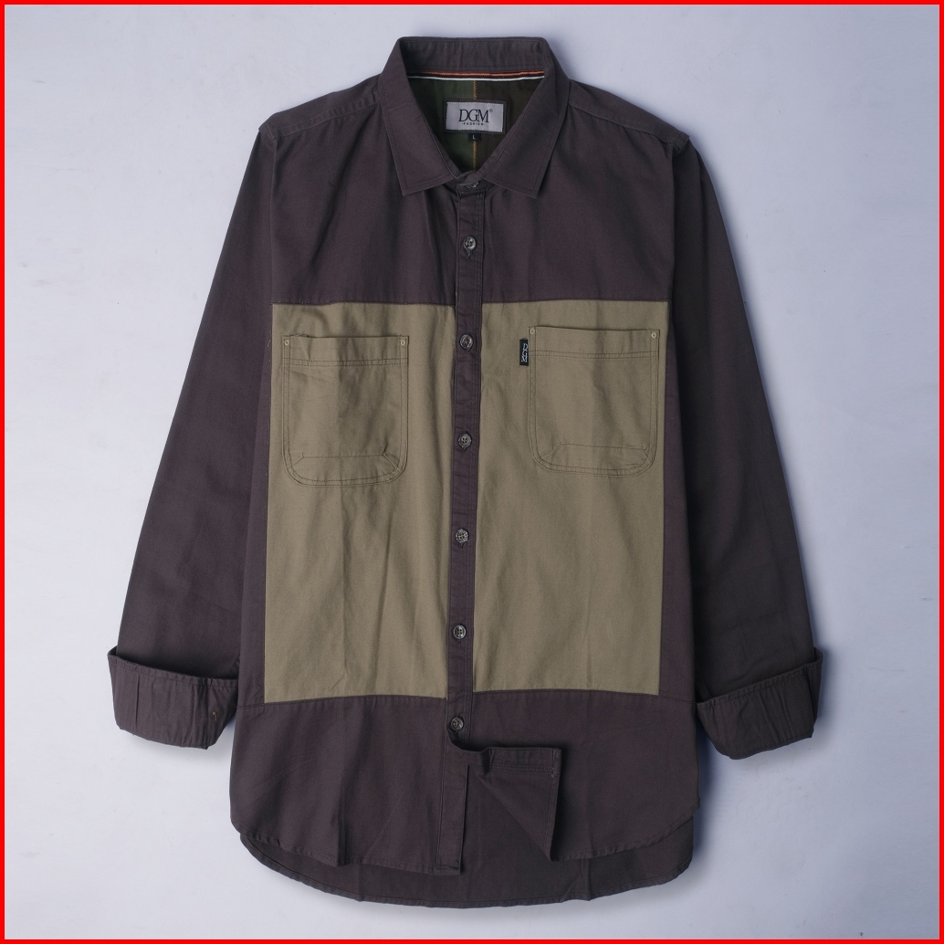 Dgm Kemeja Pria Katun Twill 30s Premium Panjang Double Pocket Kombinasi Workshirt Kemeja Kerja Saddle Brown-hijau Dareen