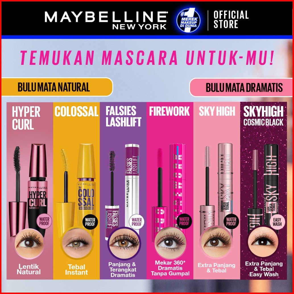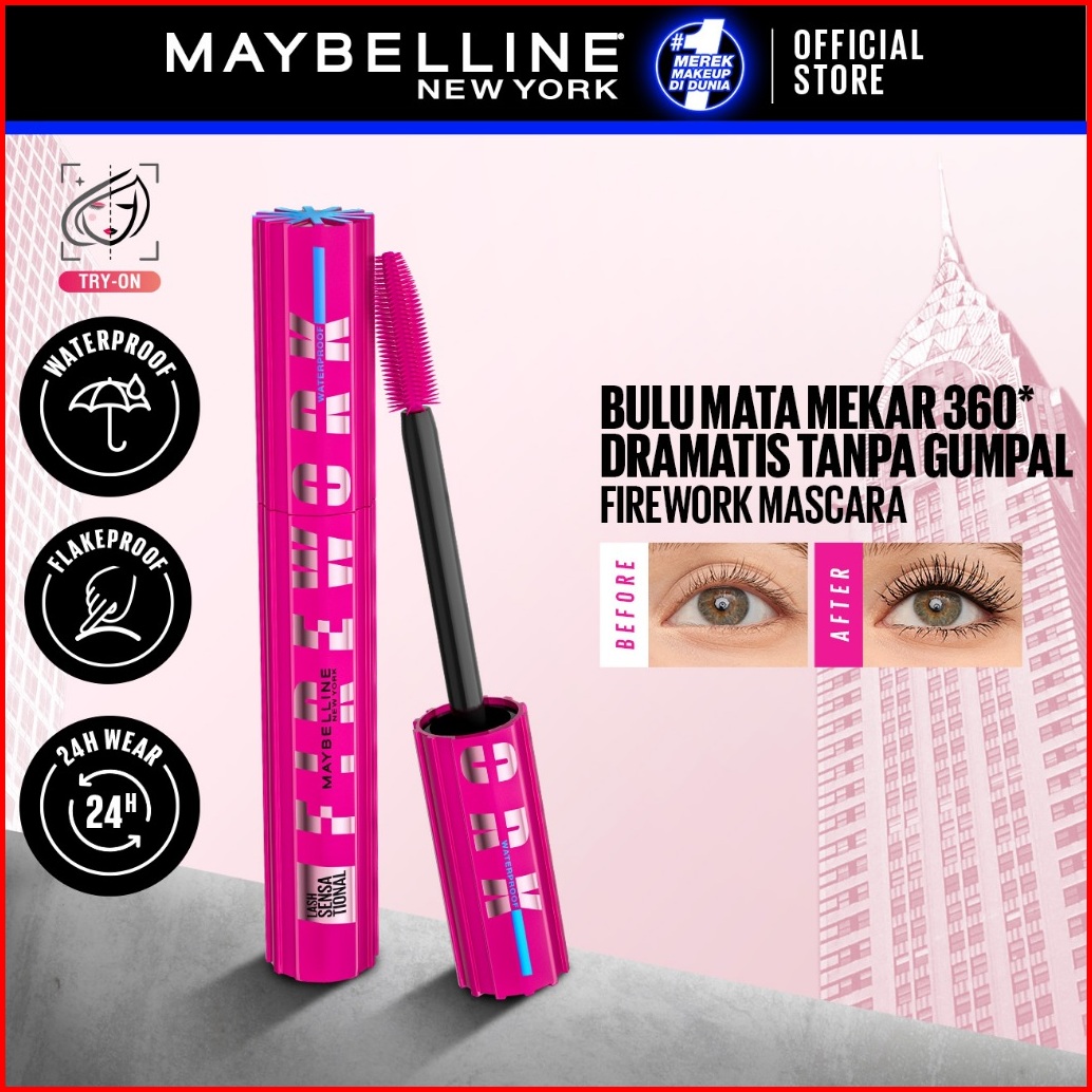 Maybelline Firework Waterproof Mascara 6ml - Bulu Mata Mekar Tahan 24 Jam Dramatis Maskara Eye Make Up Black Tanpa Gumpa