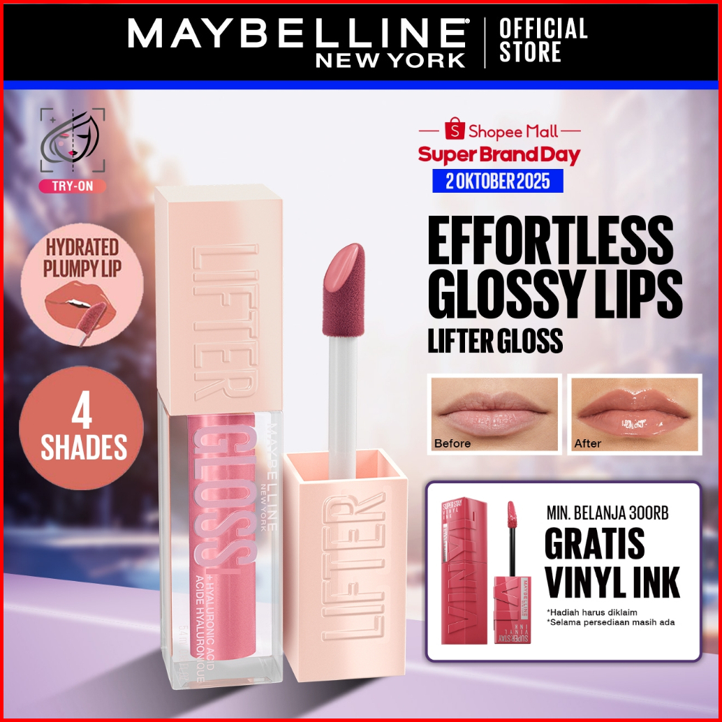 Maybelline Lifter Gloss Plump Make Up - 5.4ml Lip Gloss Hydrating Hyaluronic Acid