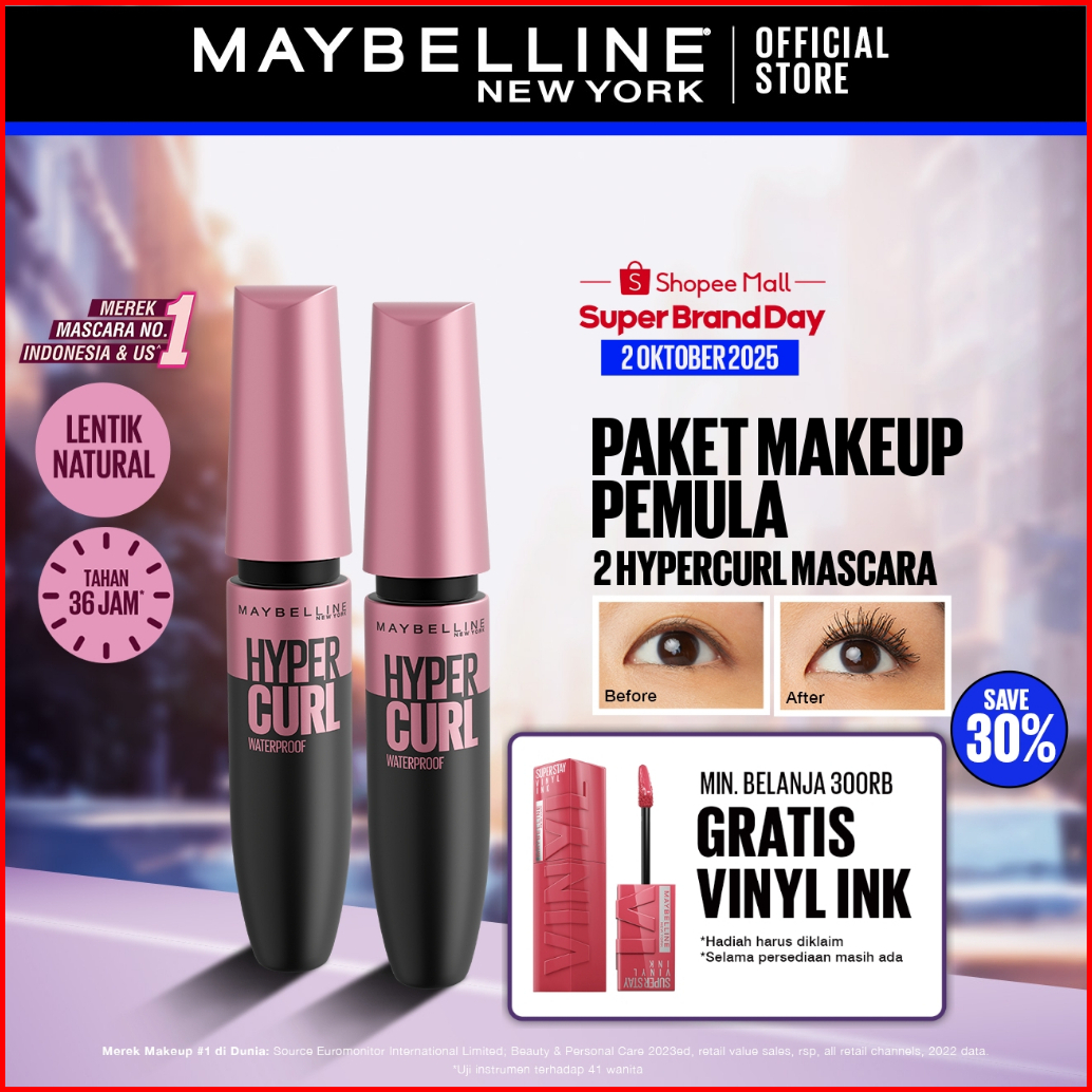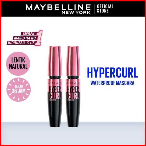 Paket Hemat Isi 2 Maybelline Volum Express Hypercurl Waterproof Mascara Make Up - Black Maskara Waterproof Tahan 36 Jam