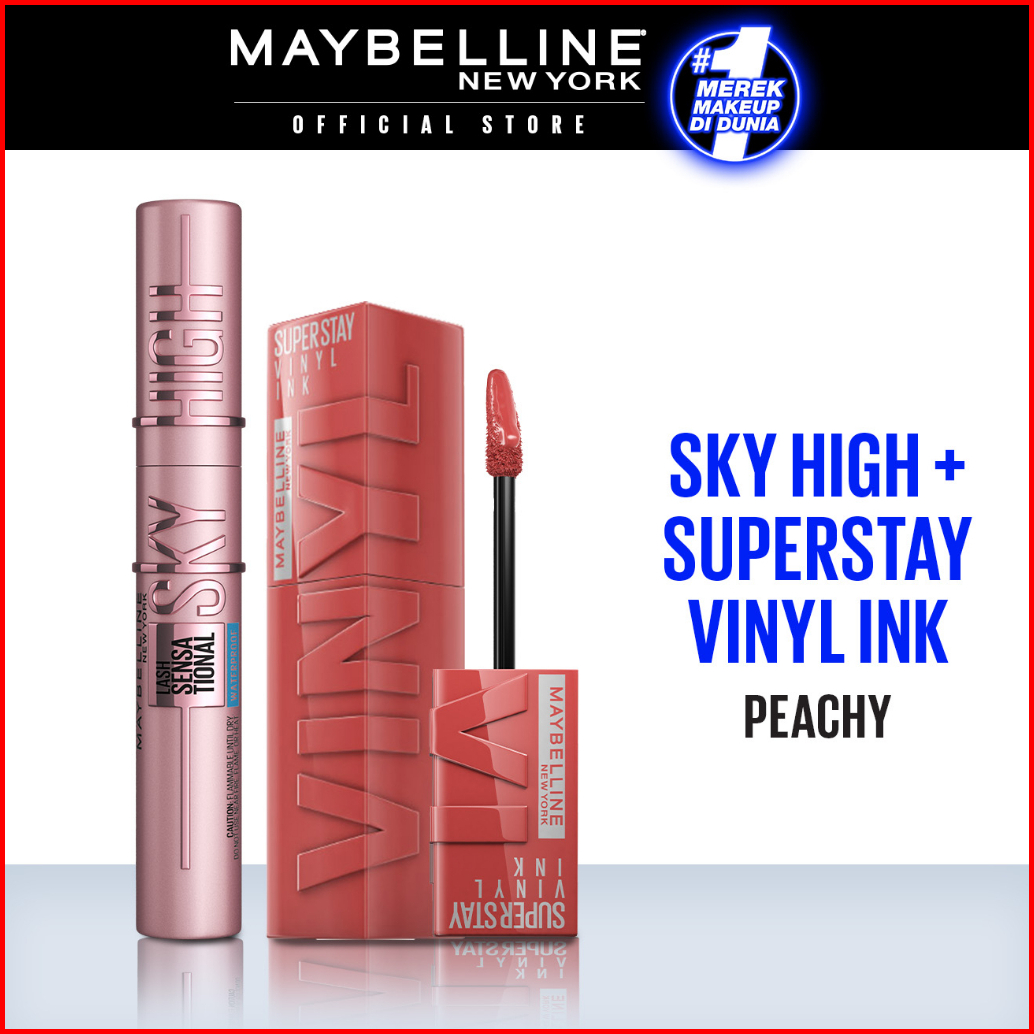 Maybelline Paket Makeup Sky High Mascara Superstay Vinyl Ink Peachy Bundle Hemat Lipstik Maskara Lipstick Transferproof