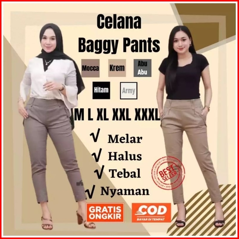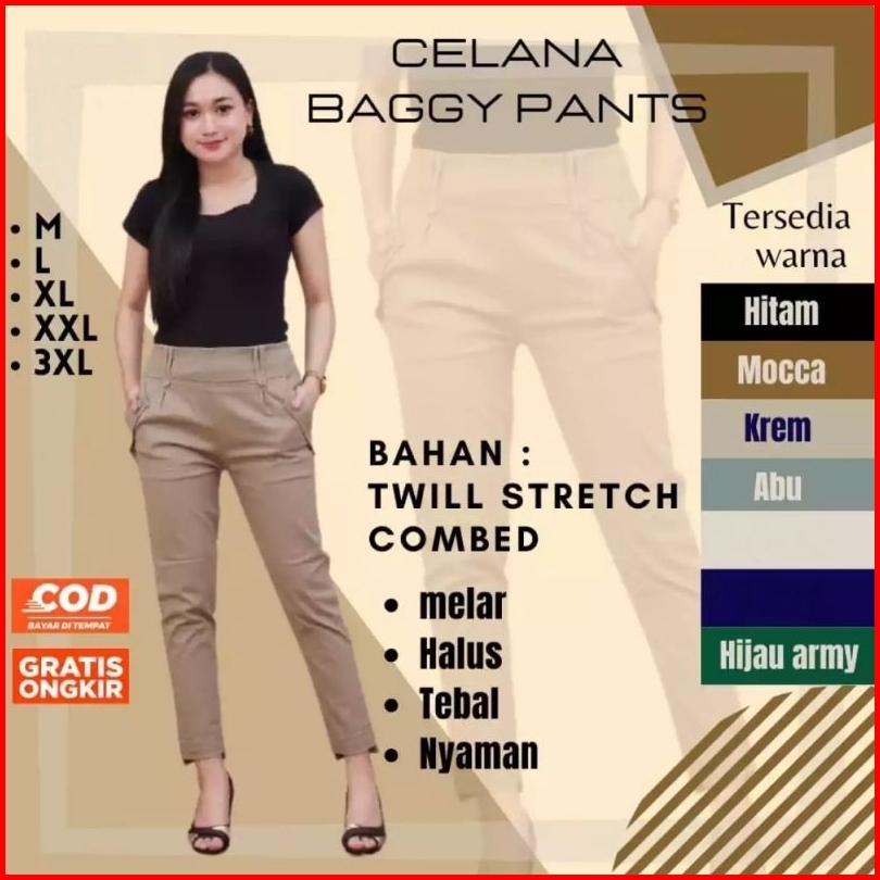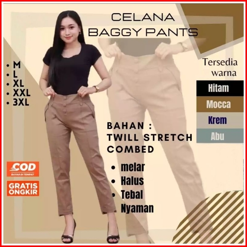 Celana Kerja Wanita Basic Pants Celana Baggy Pants Celana Kerja Bahan Katun Premium