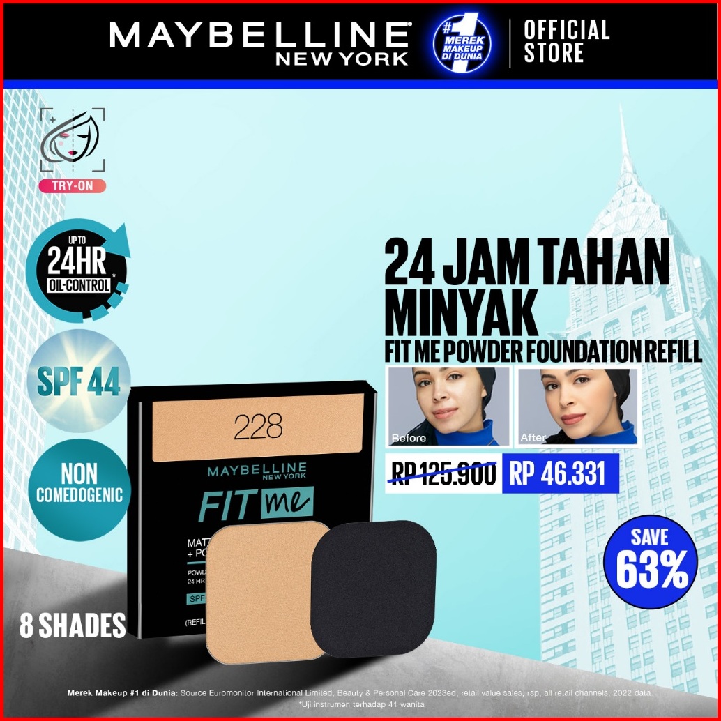 Maybelline Fit Me 24hr Refill Oil Control Powder Foundation 9gr - Makeup Bedak Two Way Cake Twc Spf 44 Pa