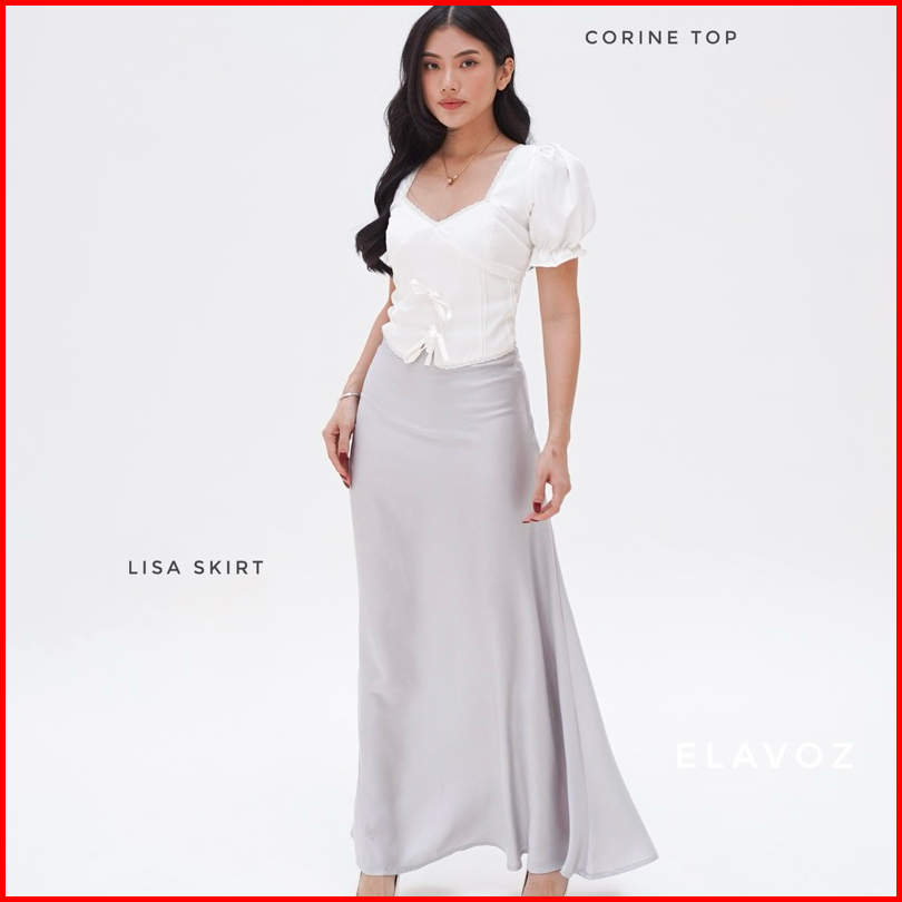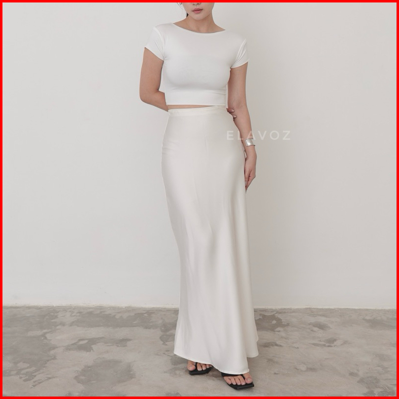 Elavoz Lisa Silk Long Skirt Bawahan Wanita Rok Wanita Rok Satin
