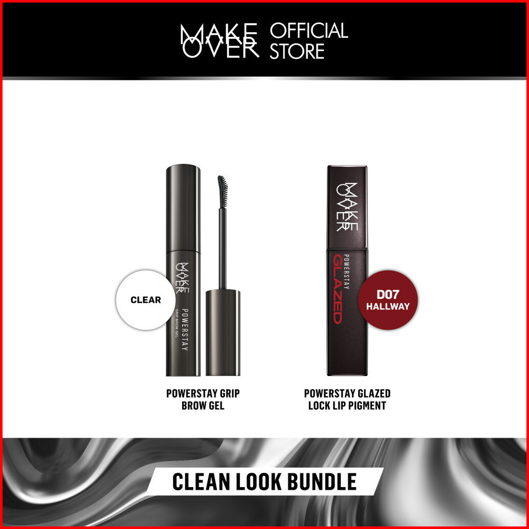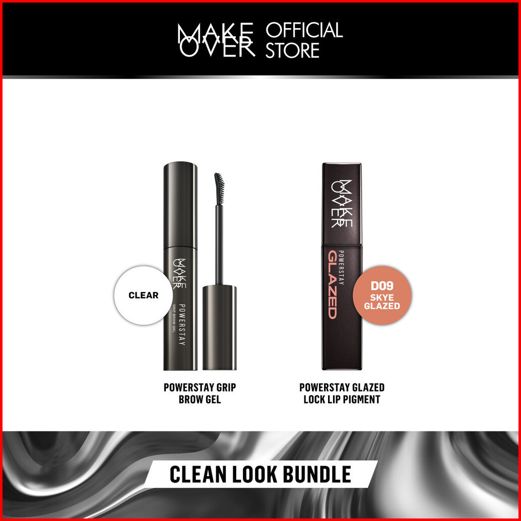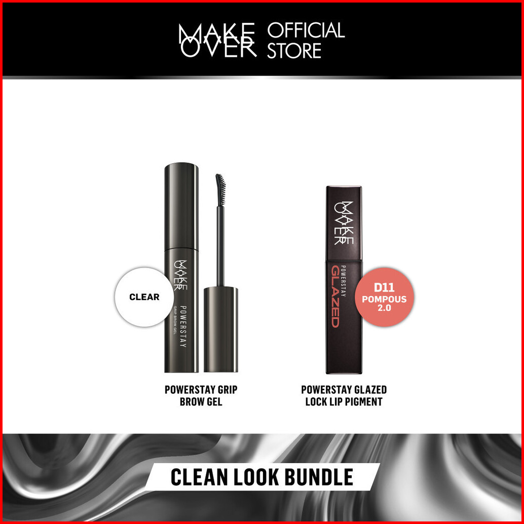 Make Over Clean Look Bundle Powerstay Grip Brow Gel Glazed Lock Lip Pigment